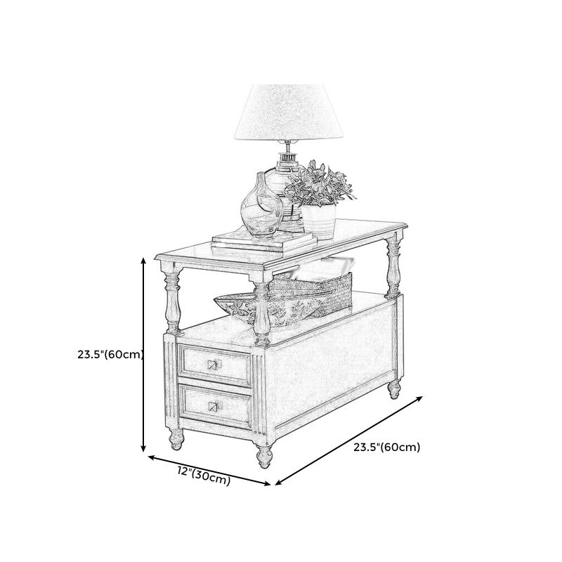 23,6 "hohe rustikale Eichenschubladen -Endtabelle 4 Beine rechteckiger Beistelltisch