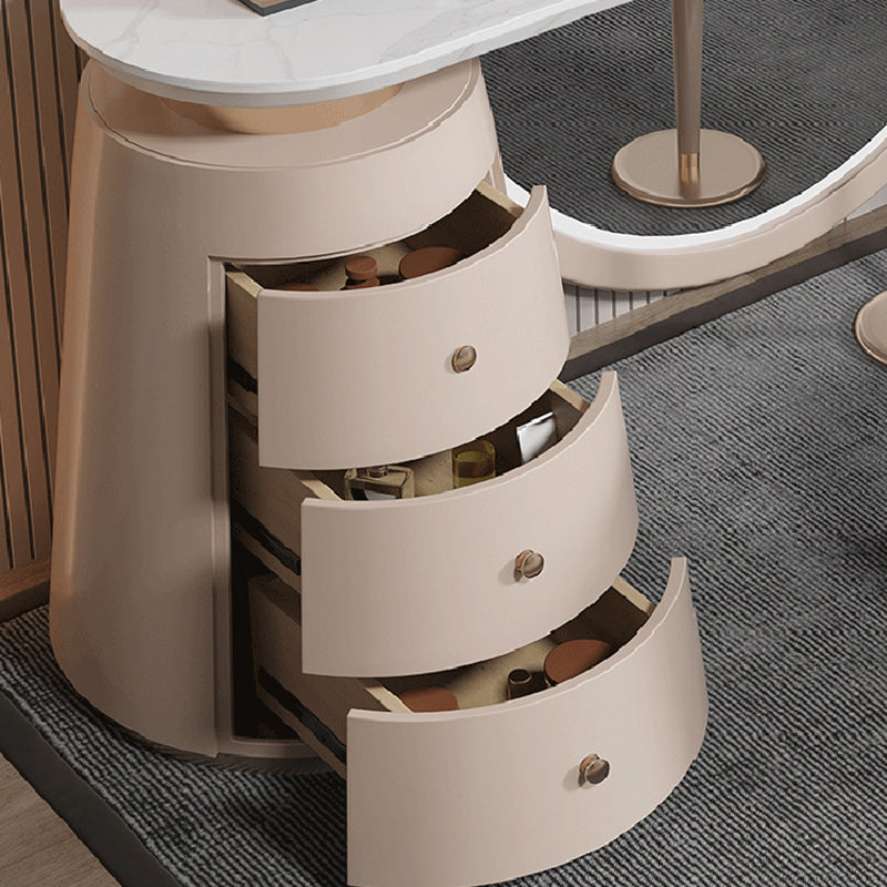 3 Schubladen weißes Make -up -Eitelkeitsverkesseltisch Stuhl Set, 17,71 "W x 29,52" H