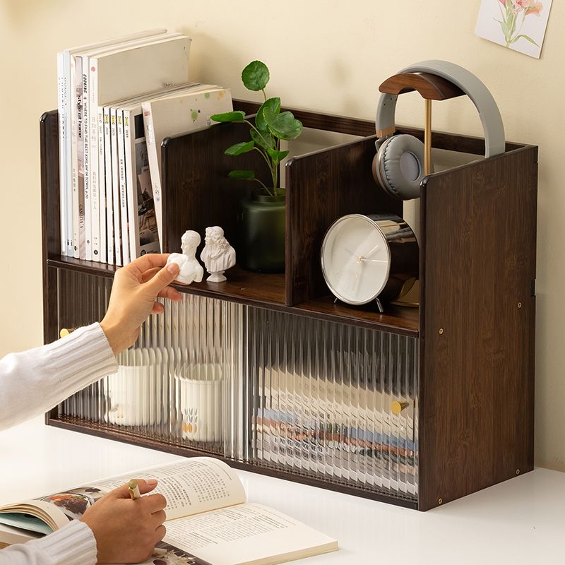 Zeitgenössischer geschlossener Backbuchregal Bambus Horizontales Bücherregal mit Türen