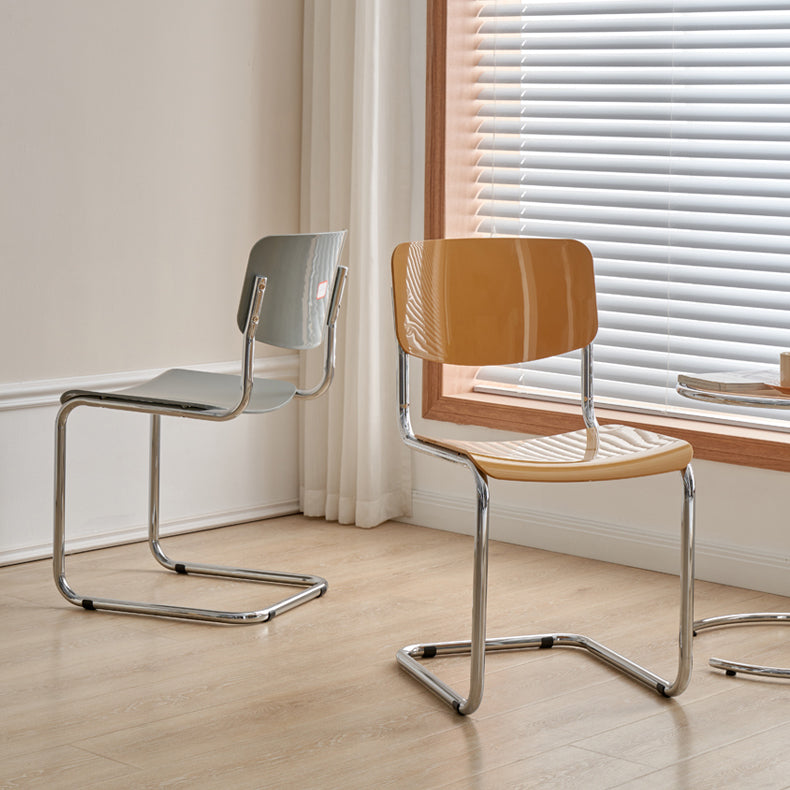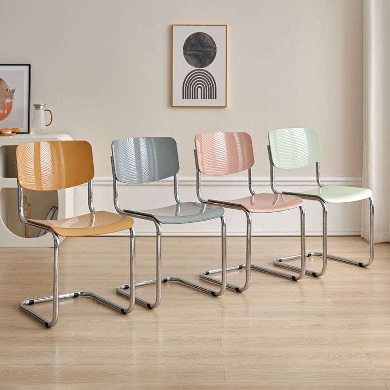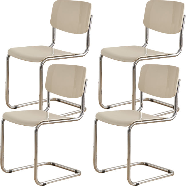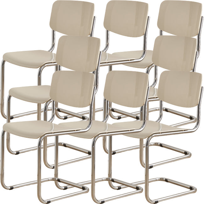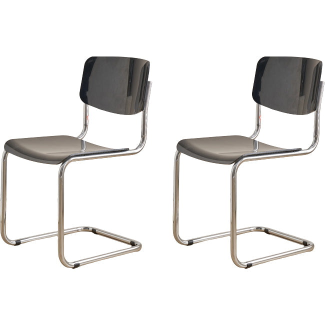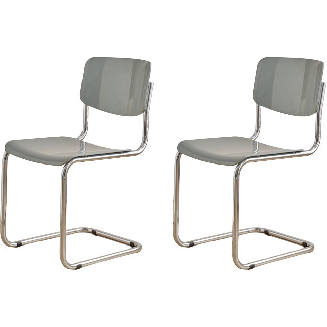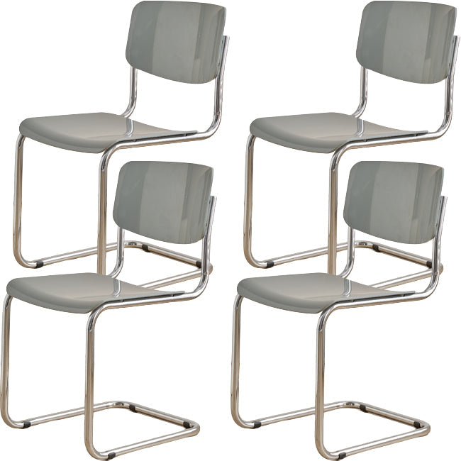 Zeitgenössischer Esszimmer Silber Bein offener armloser Esstuhl