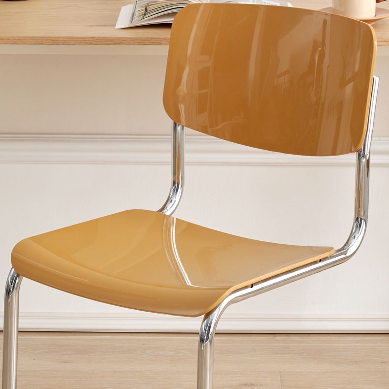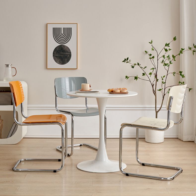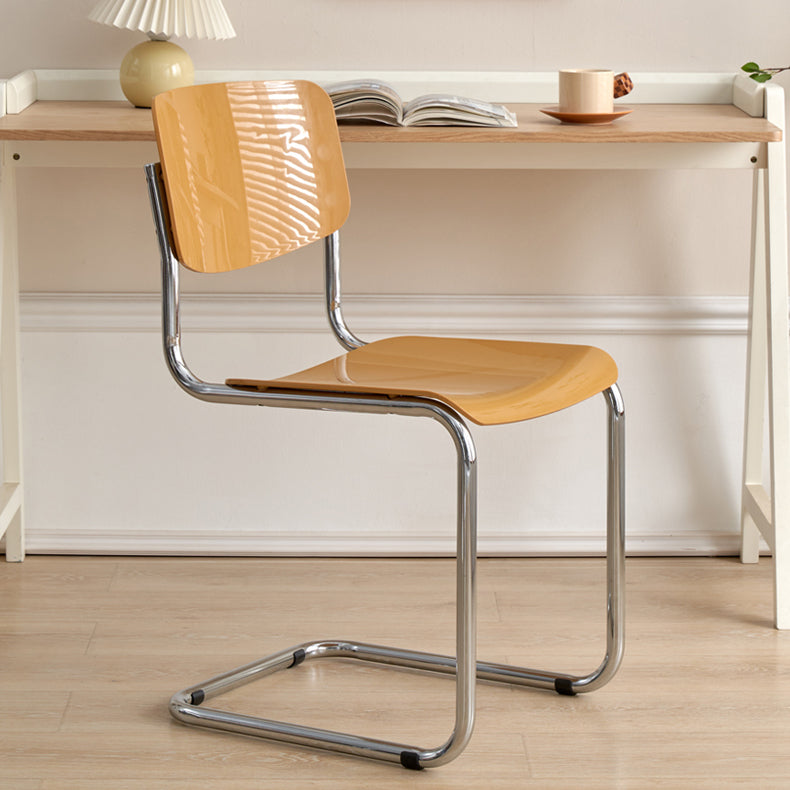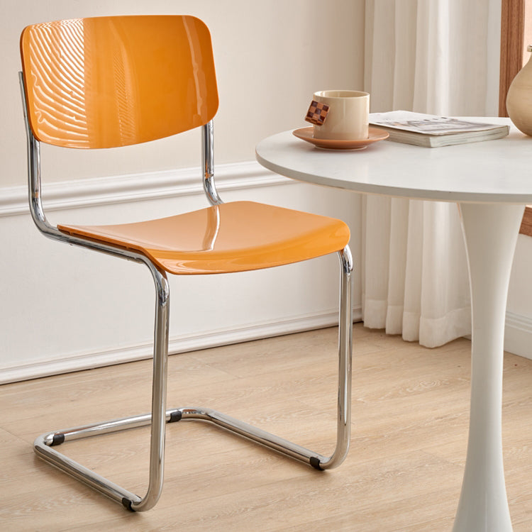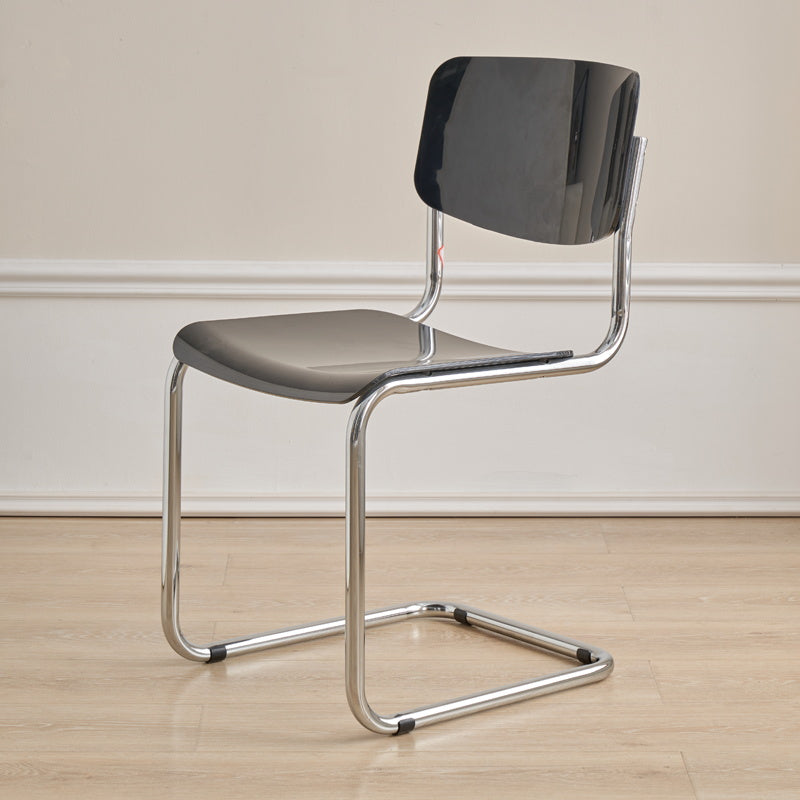 Zeitgenössischer Esszimmer Silber Bein offener armloser Esstuhl