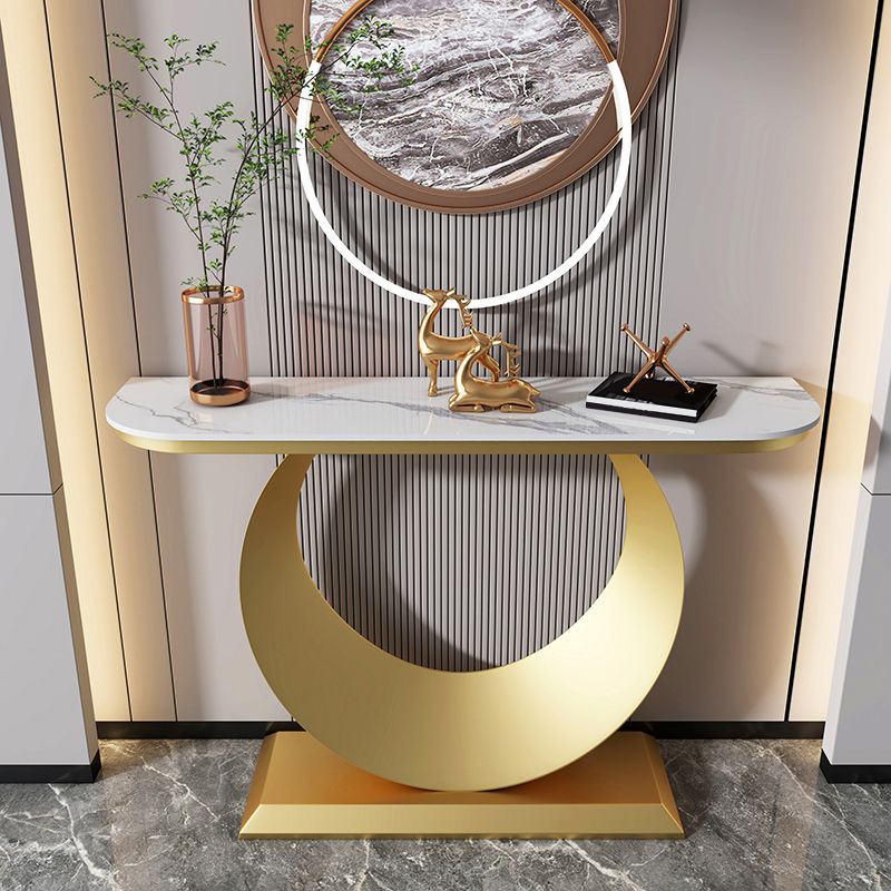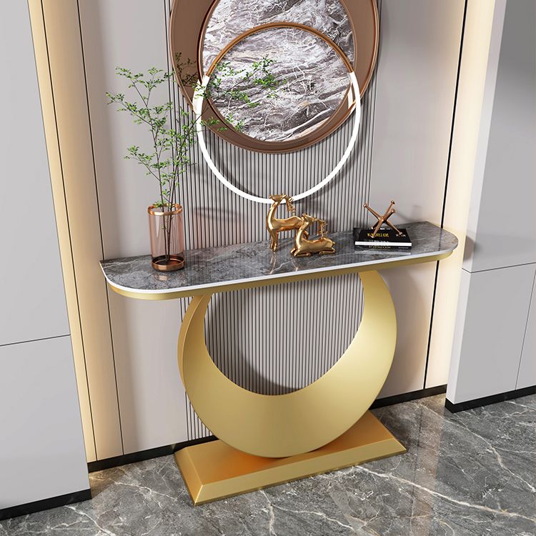 Zeitgenössische Halbmondkonsole Akzenttisch Antikes Finish -Konsole -Sofa Tisch in Stein