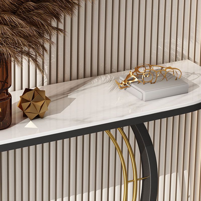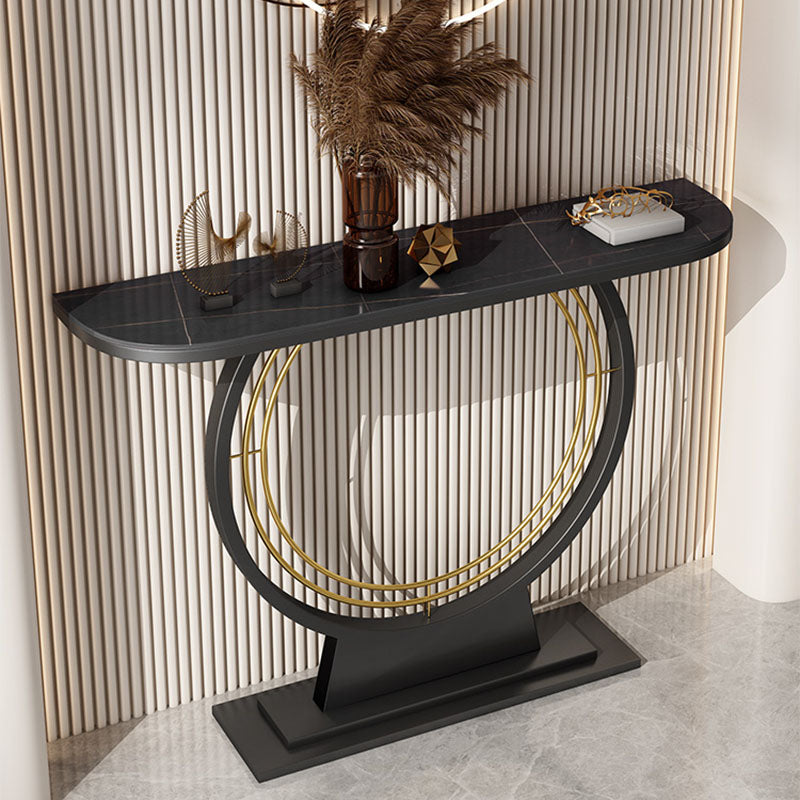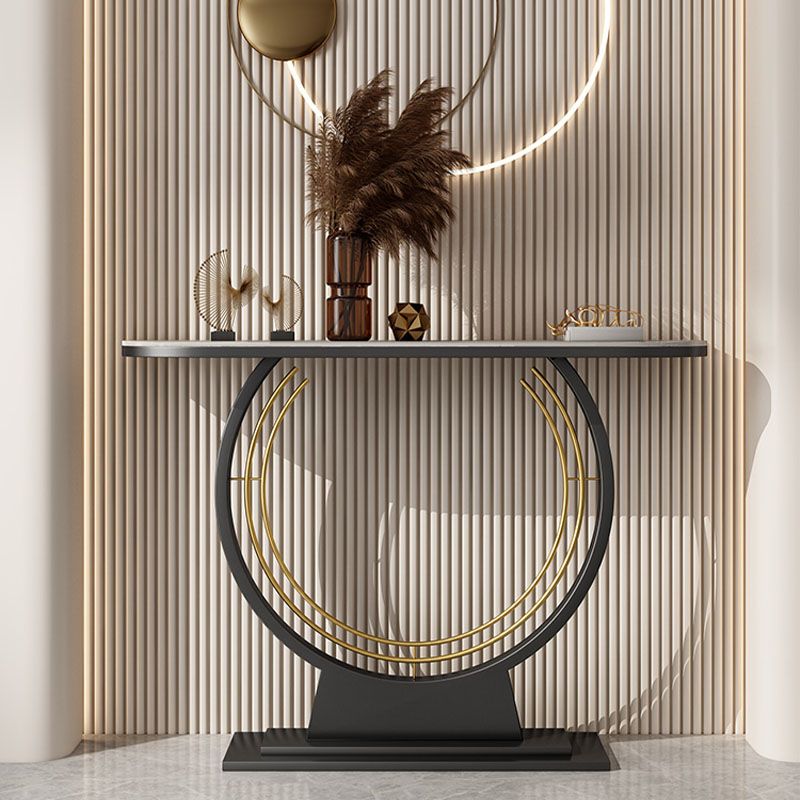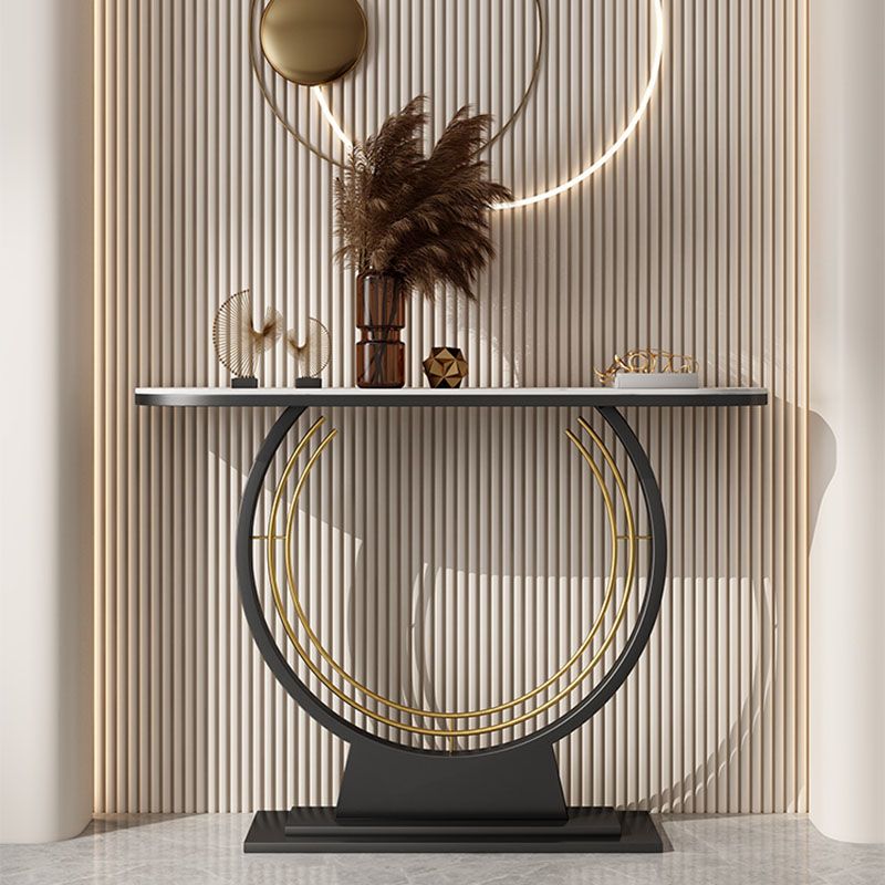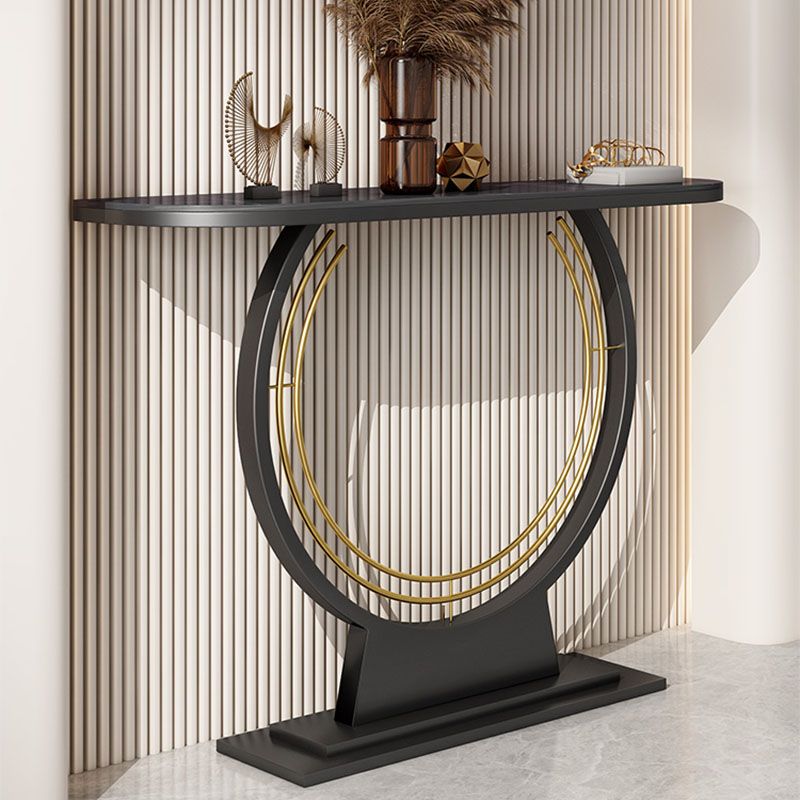 Zeitgenössischer Eisenkonsole Sofa Tischstein Halb Mondendtisch für Halle