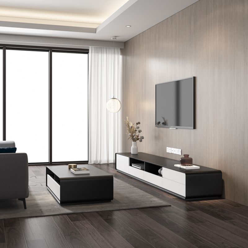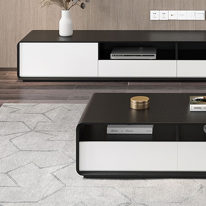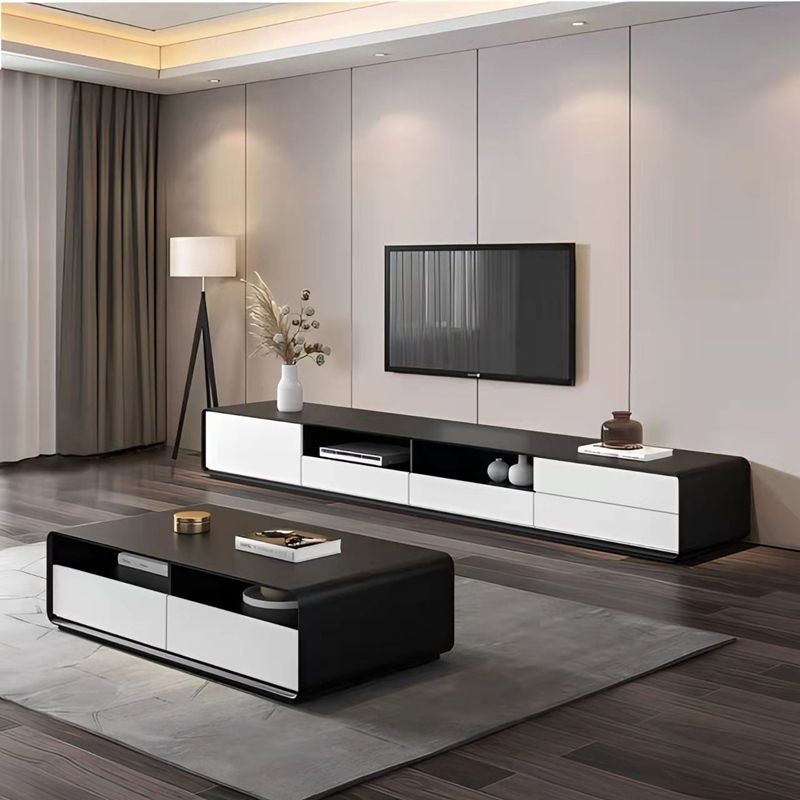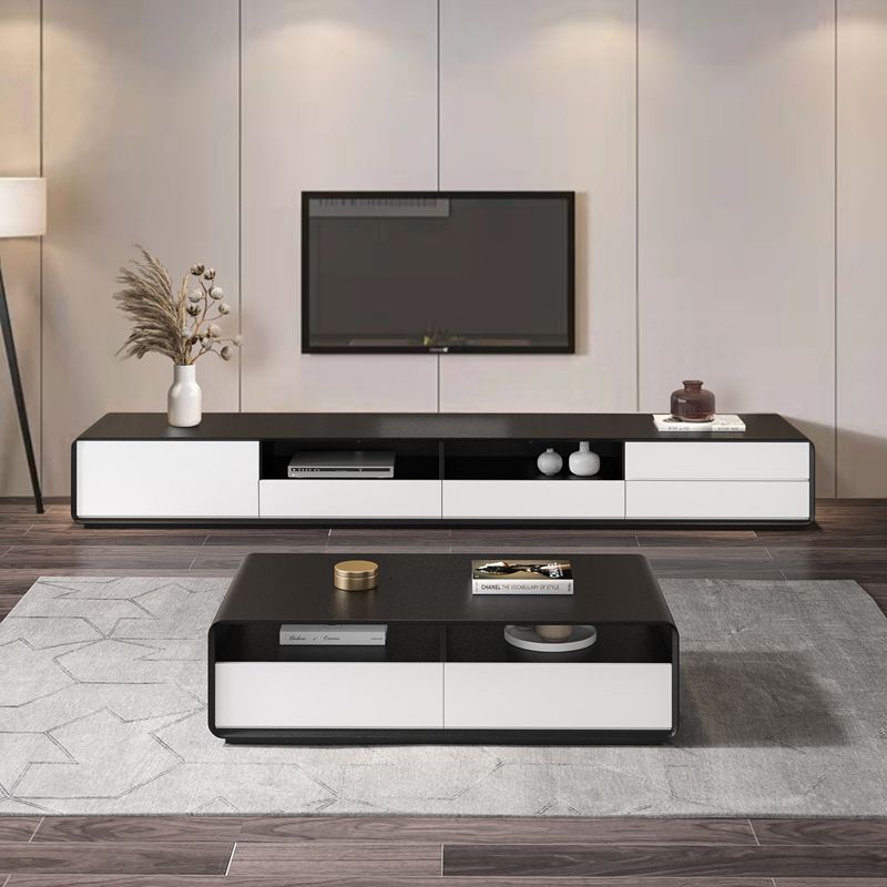 Zeitgenössische offene Regale TV -Konsole entwickelte Holz -TV -TV -Ständer in Schwarz und Weiß