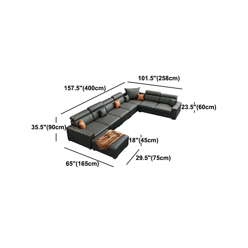 Dunkelgrau Kunstlederabschnitt mit quadratischem Arm für Wohnzimmer