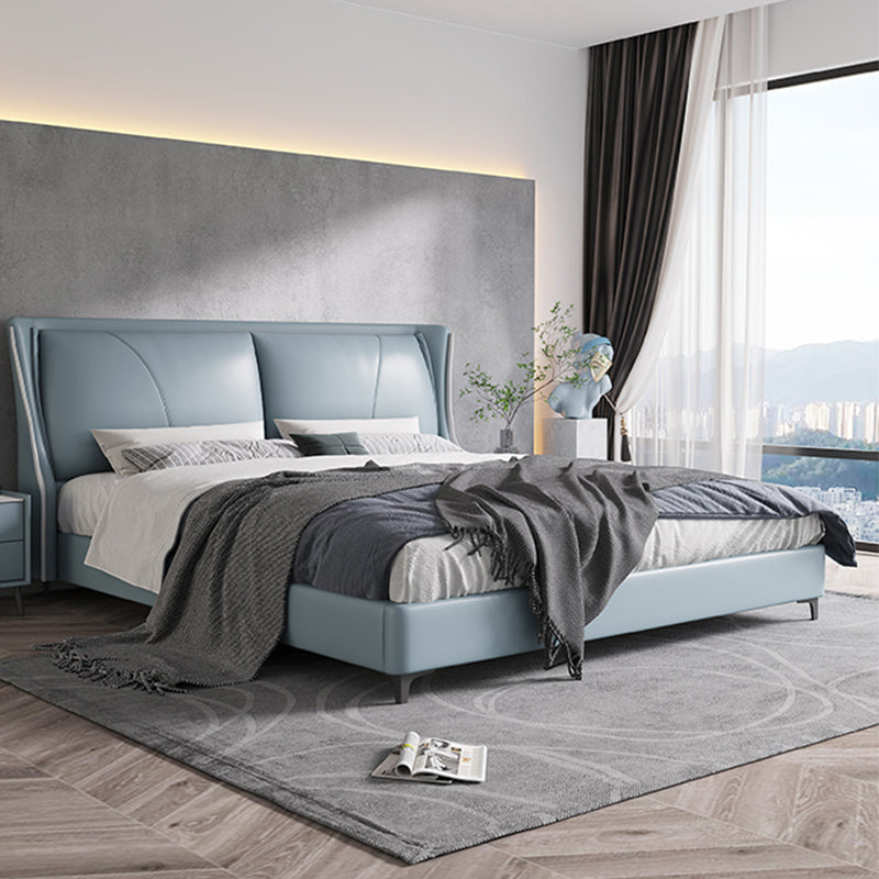 Moderne echte Lederpanel -Bettkiefernholzbett mit gepolstertem Kopfteil