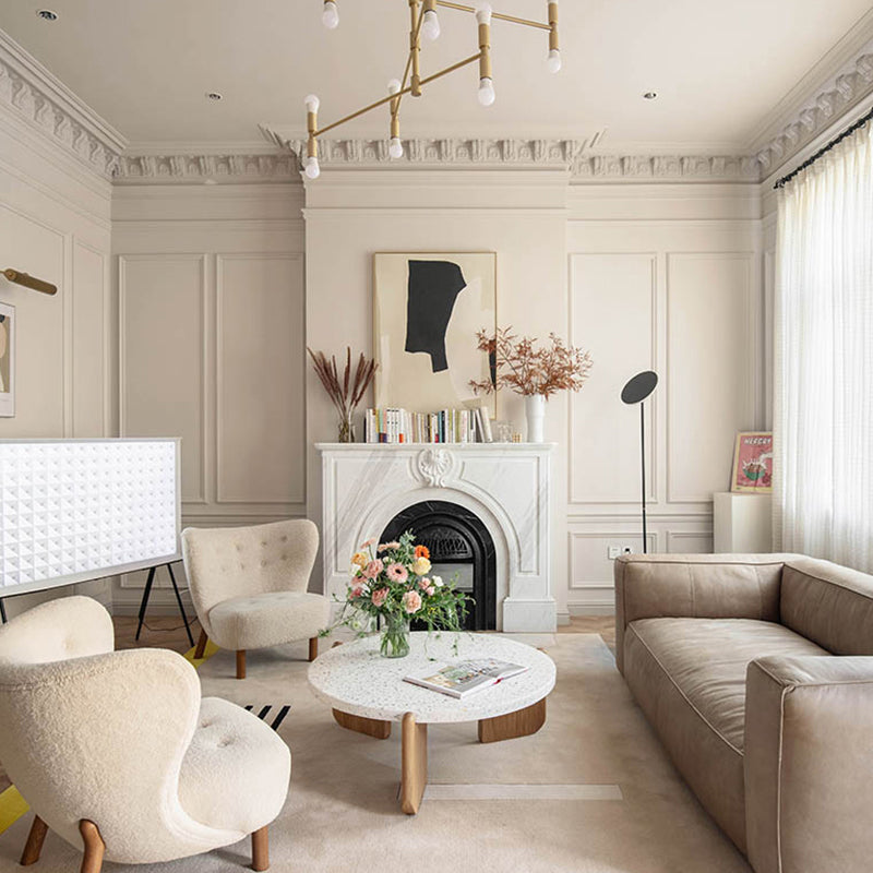 Moderne minimalistische runde Kaffeetisch 3 Beine Terrazzo Cocktailtisch in Weiß