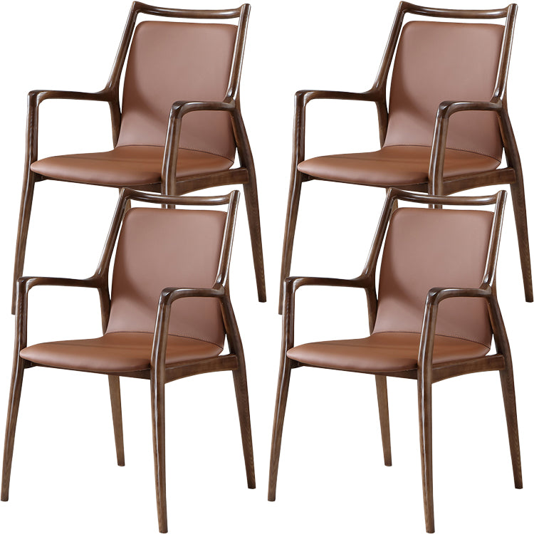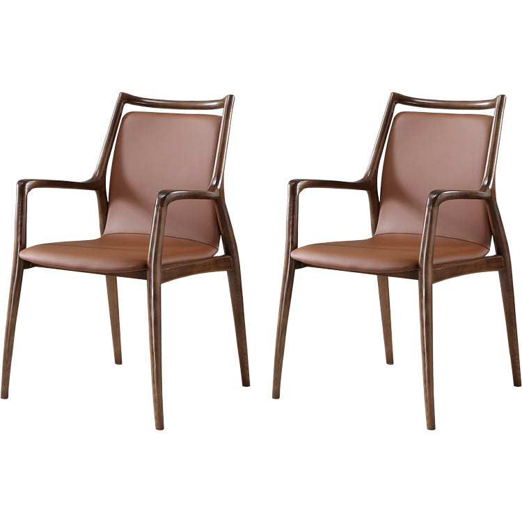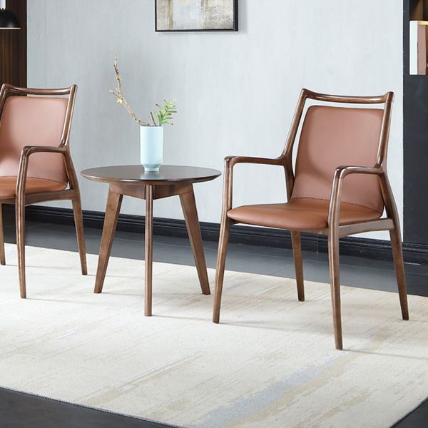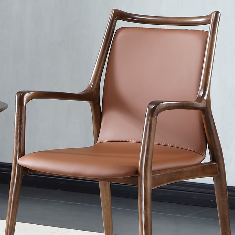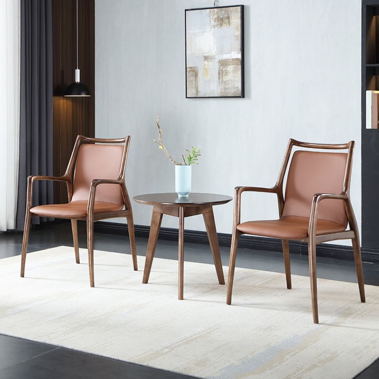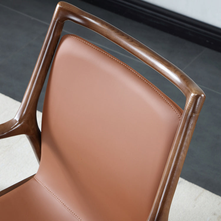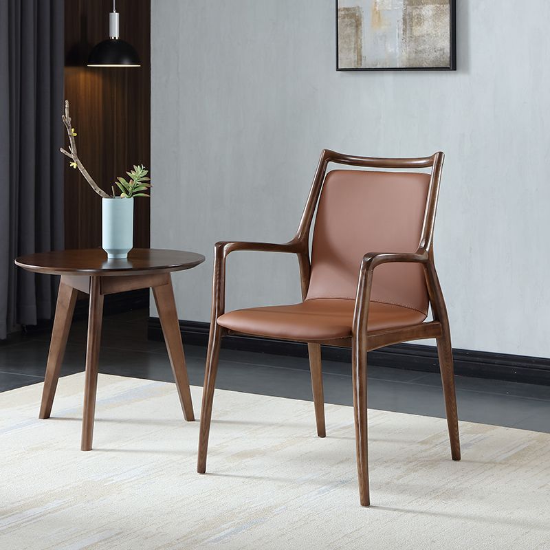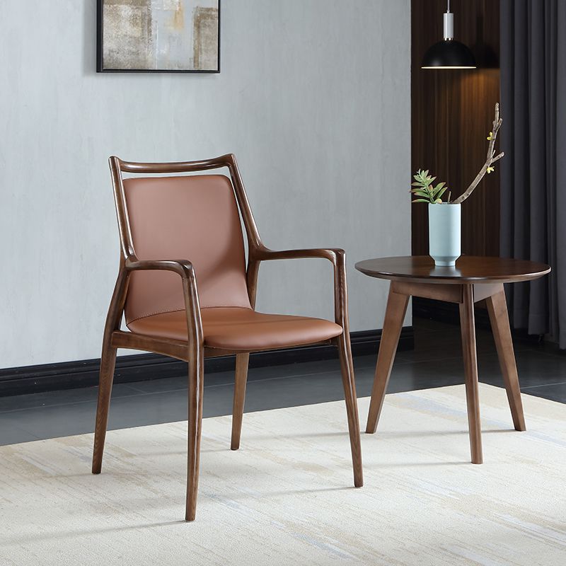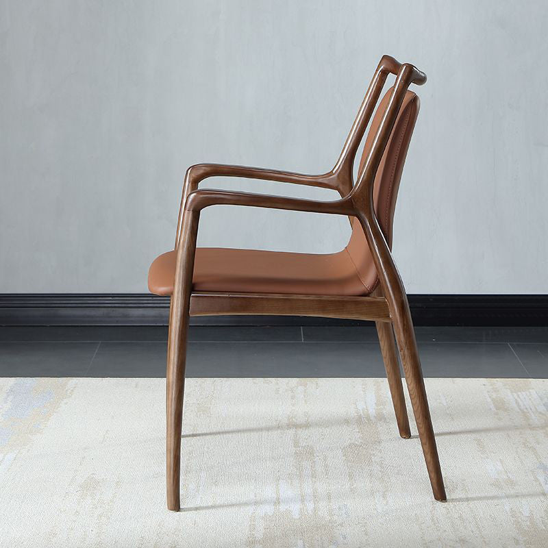 Nordischer Lederstuhl für Lederbrauner Arm in festem Holz für Zuhause