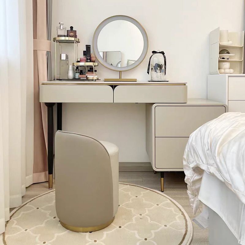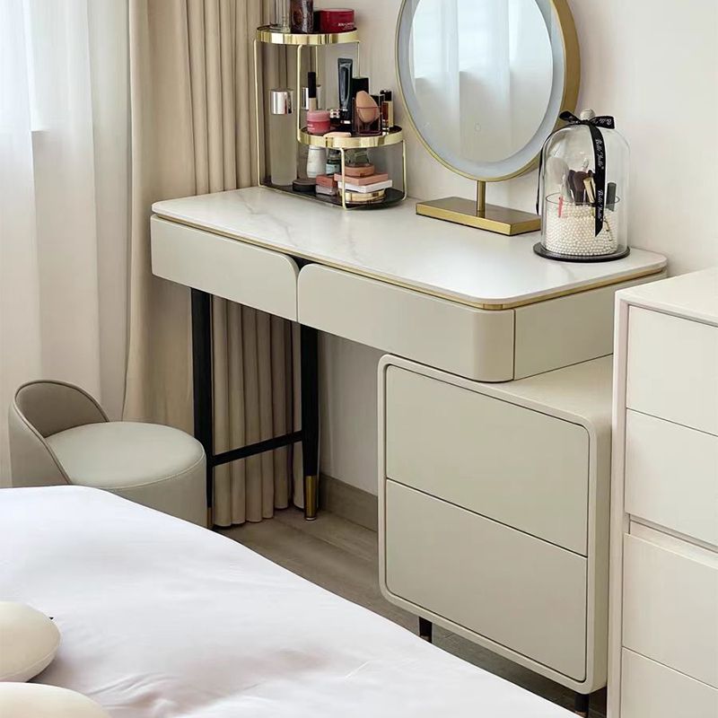 Rock Slate Off-White-Schminktisch mit 4 Schubladen Metallbasis