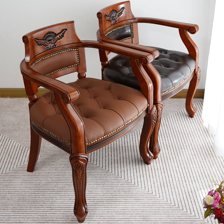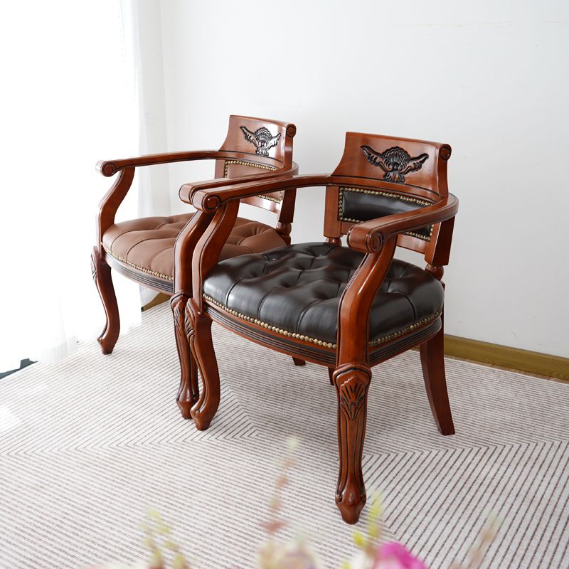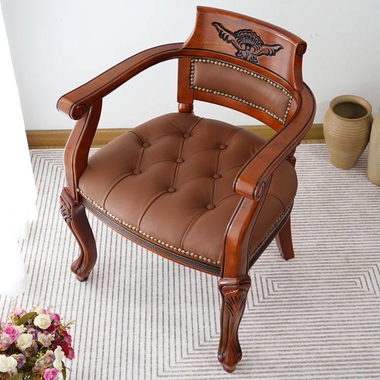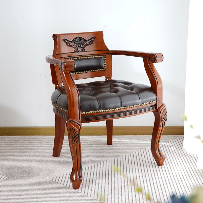 Rustikaler Essstuhl Leder Massivholz Armstuhl für Zuhause