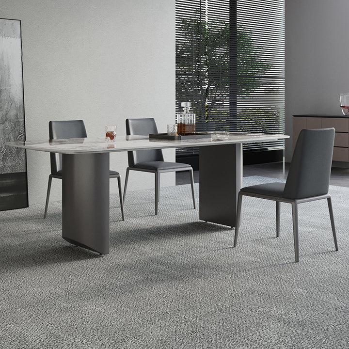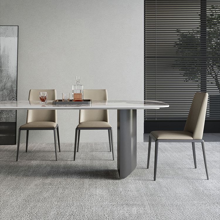 Silberbein zeitgenössischer Kunstleder -Esszimmerstuhl für Zuhause