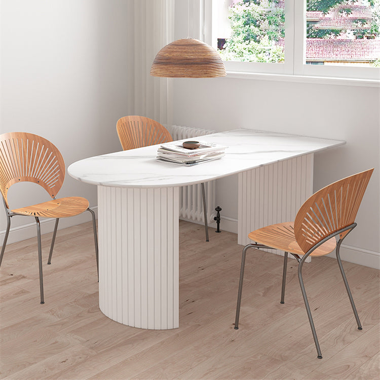 Sinteriger Stein Esstisch Moderner weißer Esstisch mit Holzbasis
