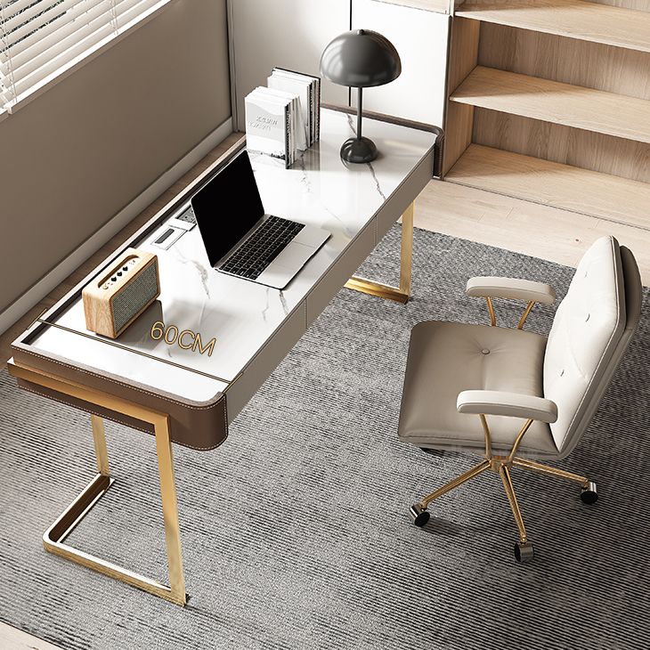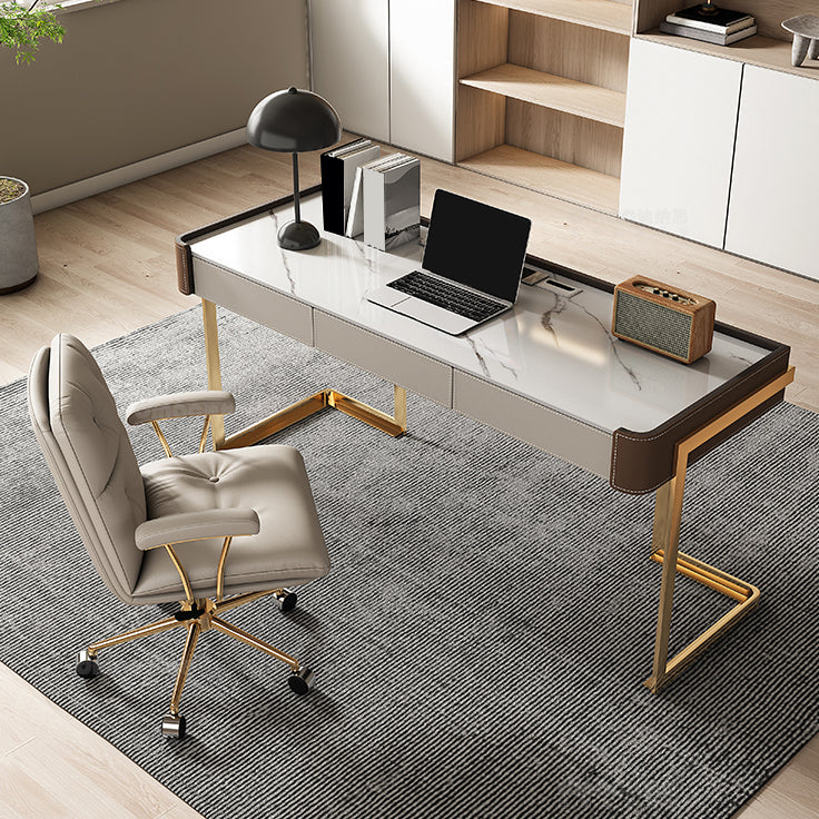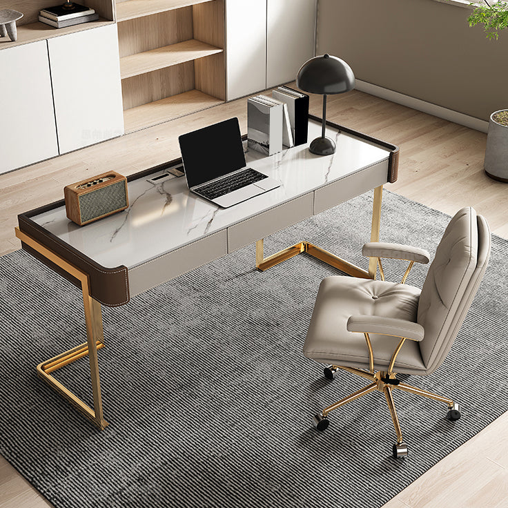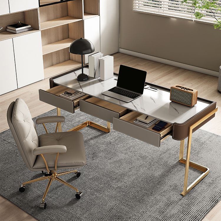 Stein gebogener Schreibtisch Glam 29.53 "großer Büroschreibtisch mit Schubladen