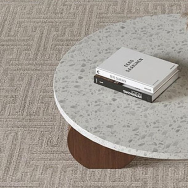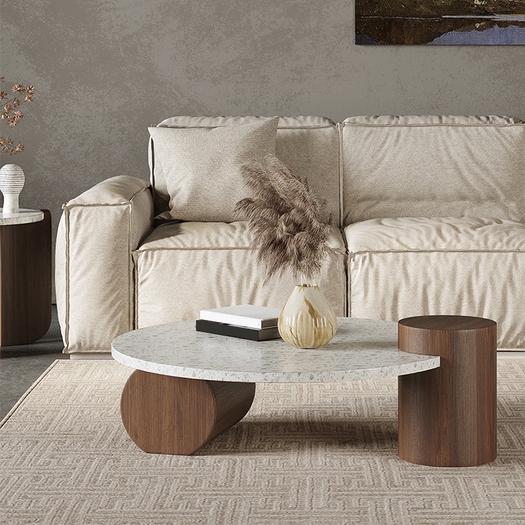 Weißer runder Couchtisch Terrazzo und Kiefernholz Cocktailtisch Set