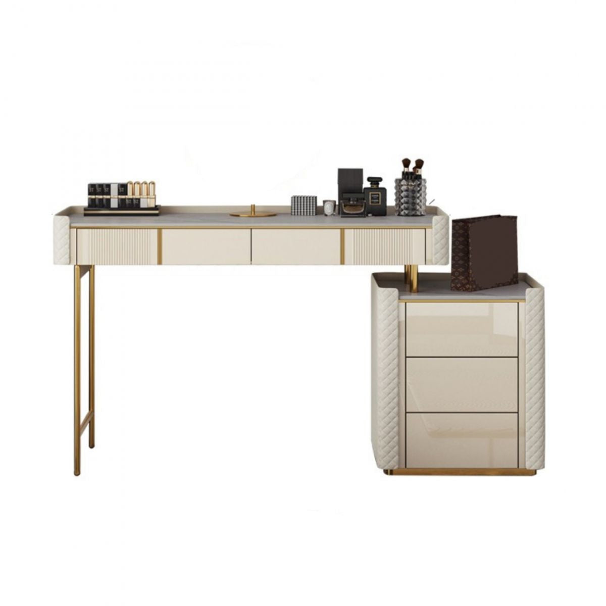 5 Speicherschubladen Eitelkeitssatz gerade Füße Kommode mit gepolstertem Hocker