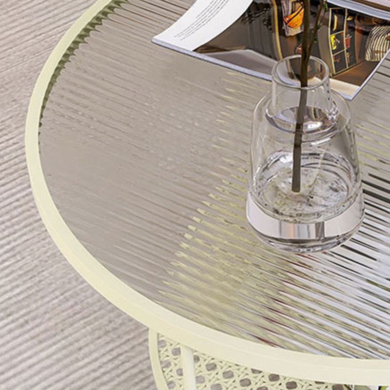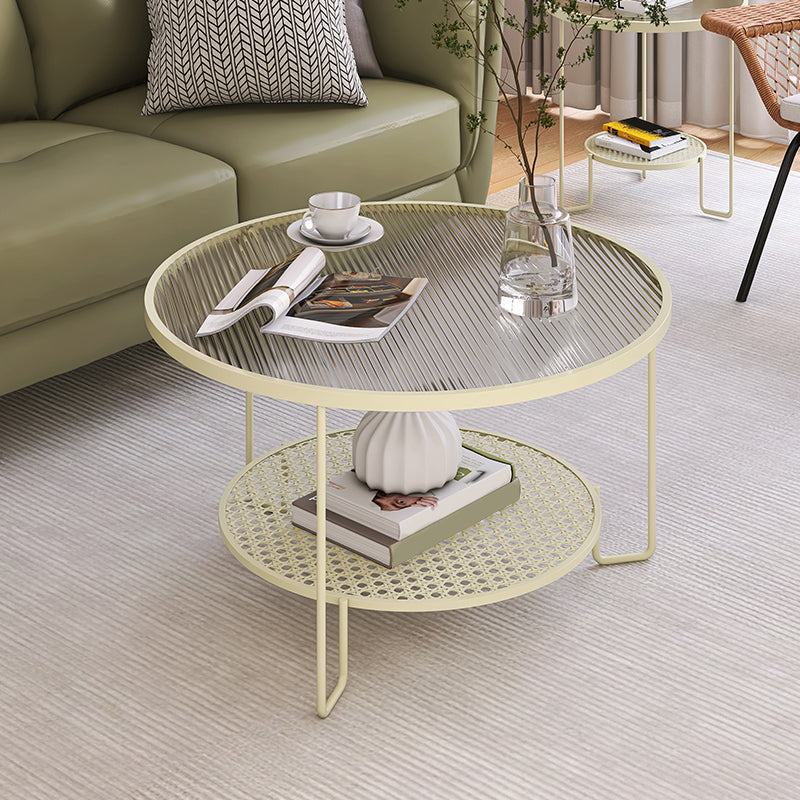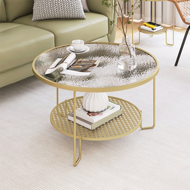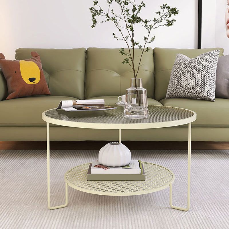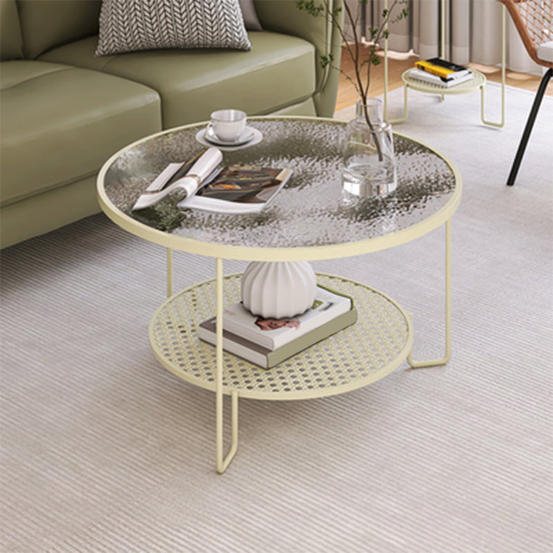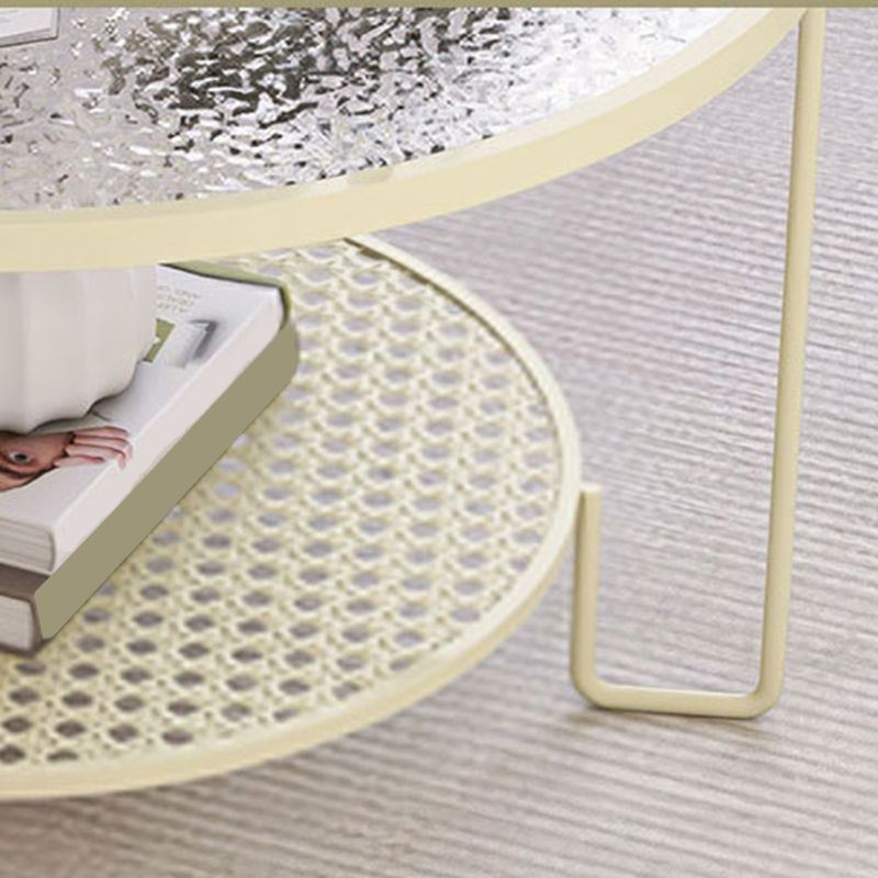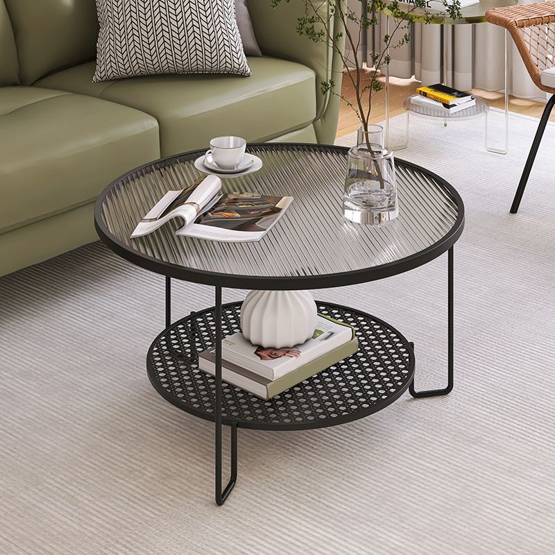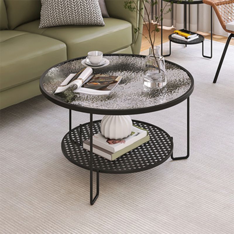 Zeitgenössischer Cocktailtisch mit Glasoberteil und Eisenbasis und Regal