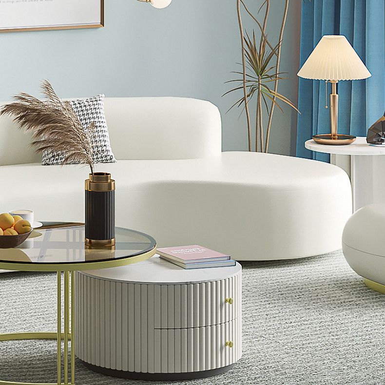Zeitgenössisches Kunstleder -Sektionssofa mit kindem Rücken in massivem Holz