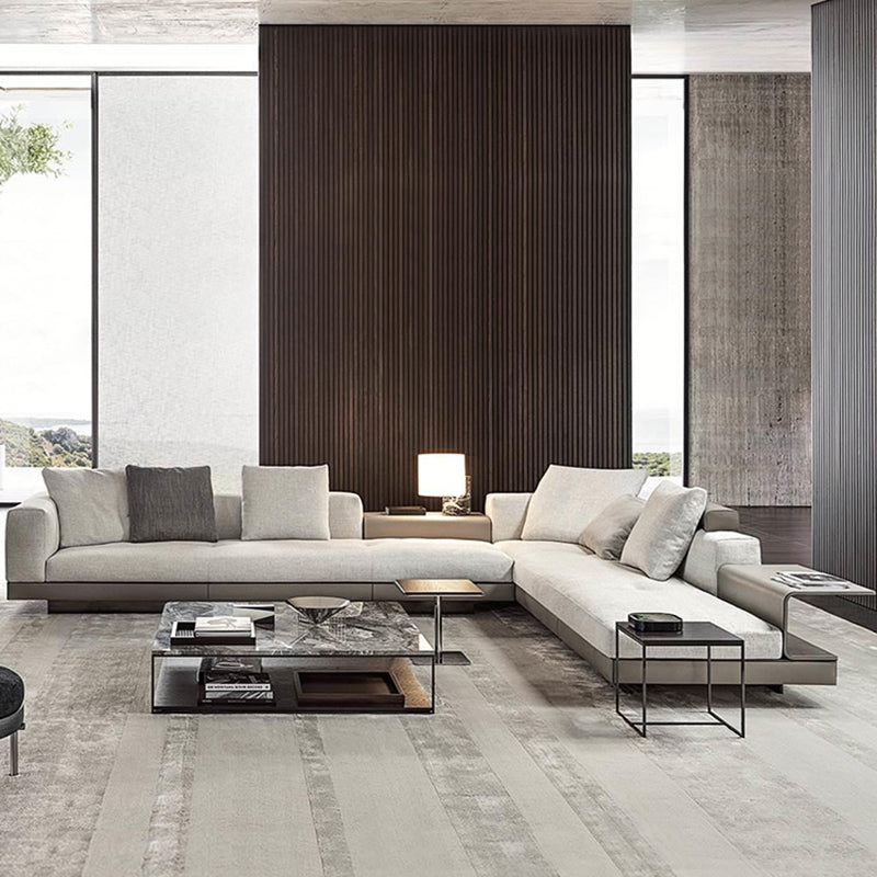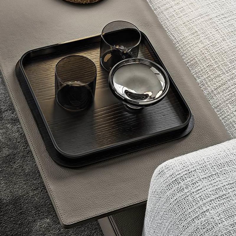 Zeitgenössisches echtes Ledersofa quadratischer Arm lose Rückensofa mit Tisch