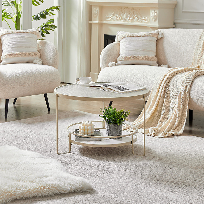 Zeitgenössischer runder Couchtisch mit Glasobertisch und Steinregal