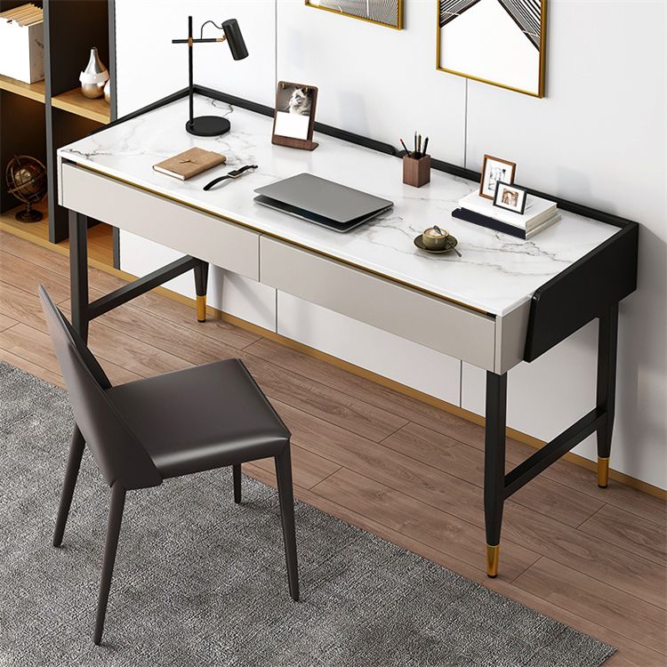 Zeitgenössischer Stein Büro -Schreibtisch Schlafzimmer Schreibtisch mit schwarzen Beinen
