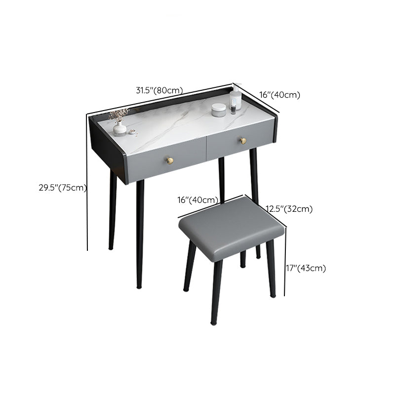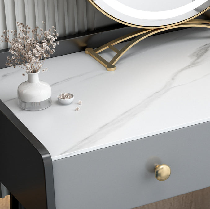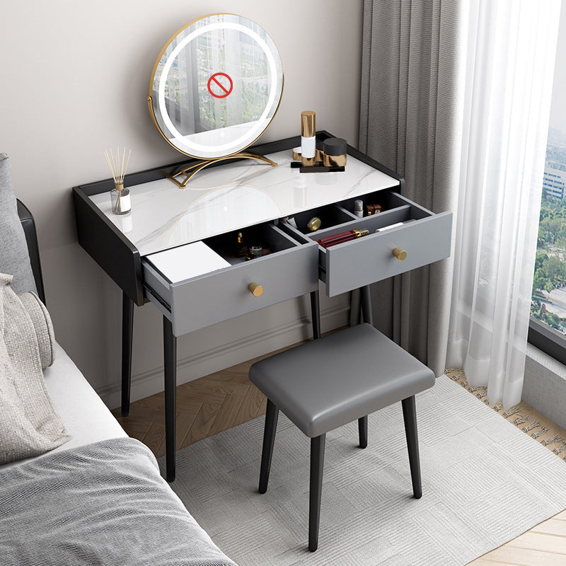 Zeitgenössischer Waschtisch mit Steinmake -up -Schminktisch in Schwarz