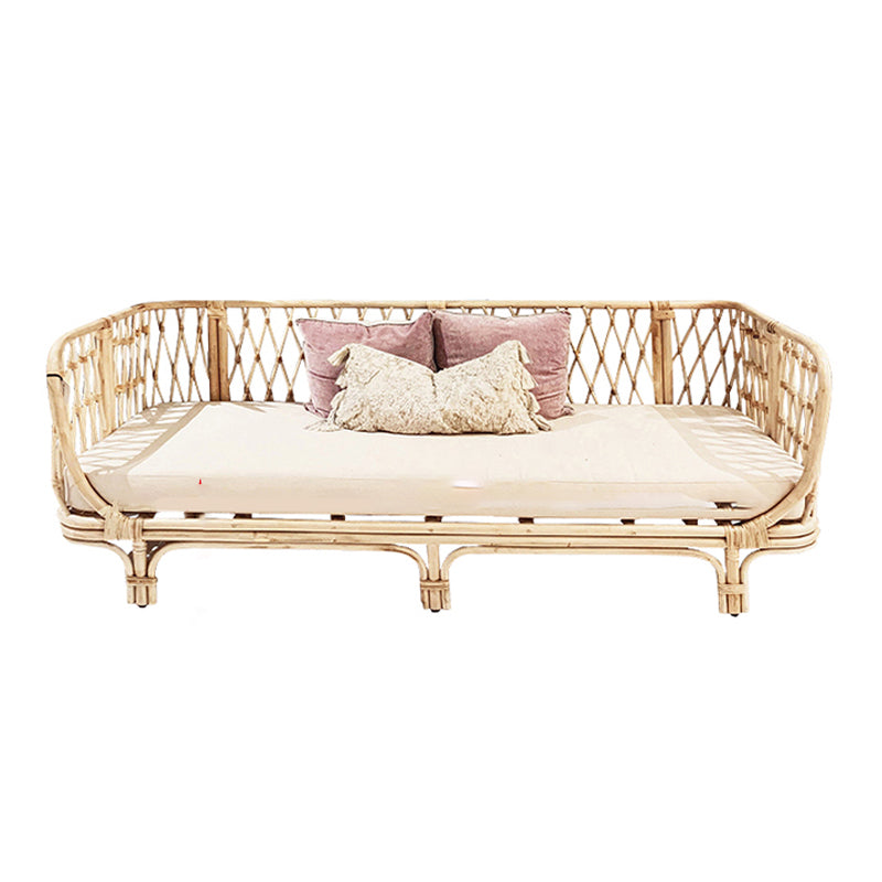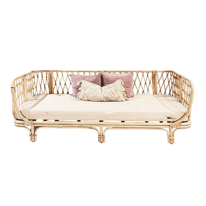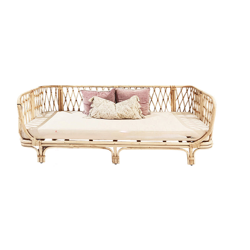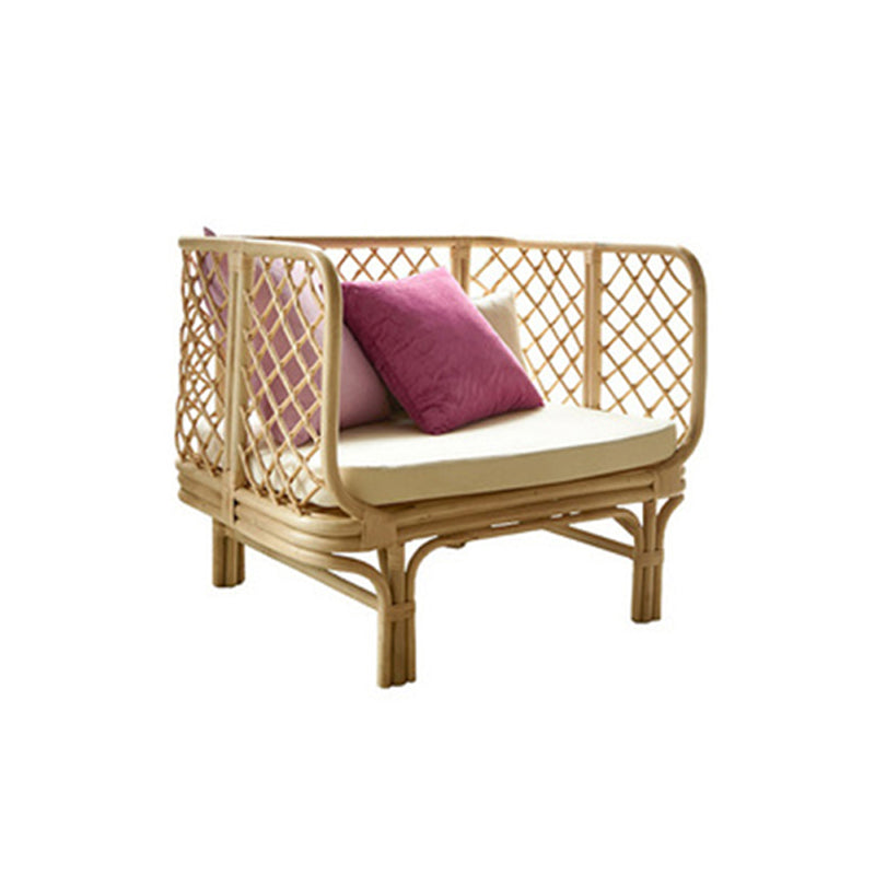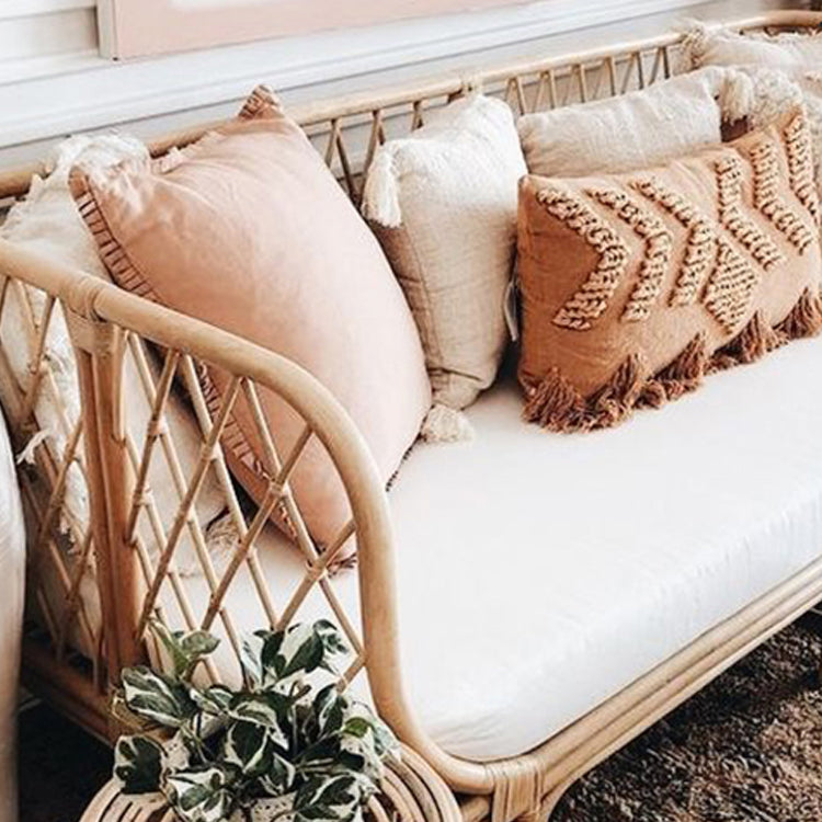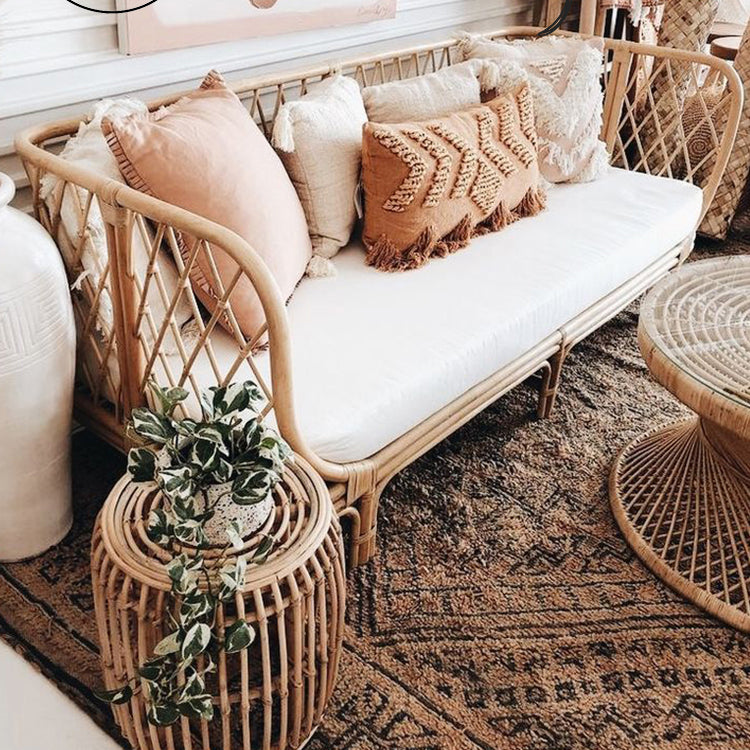 Stoffsofa in leichter Brone -Rahmen tropisches Sofa mit Lolsterkissen