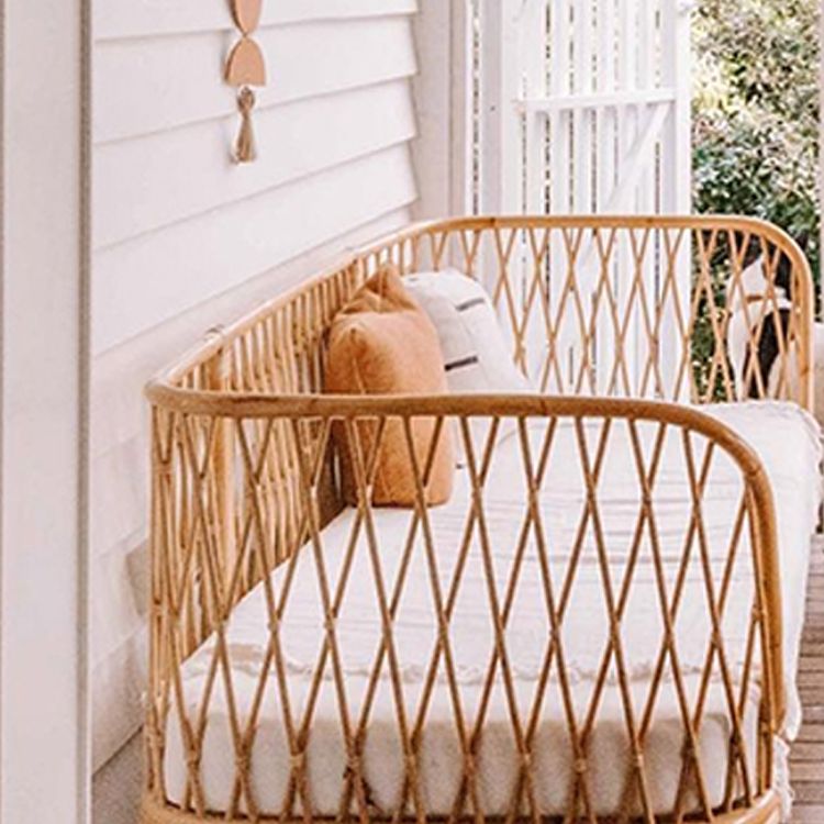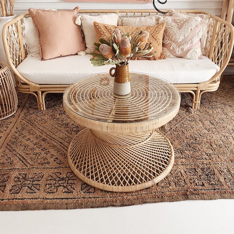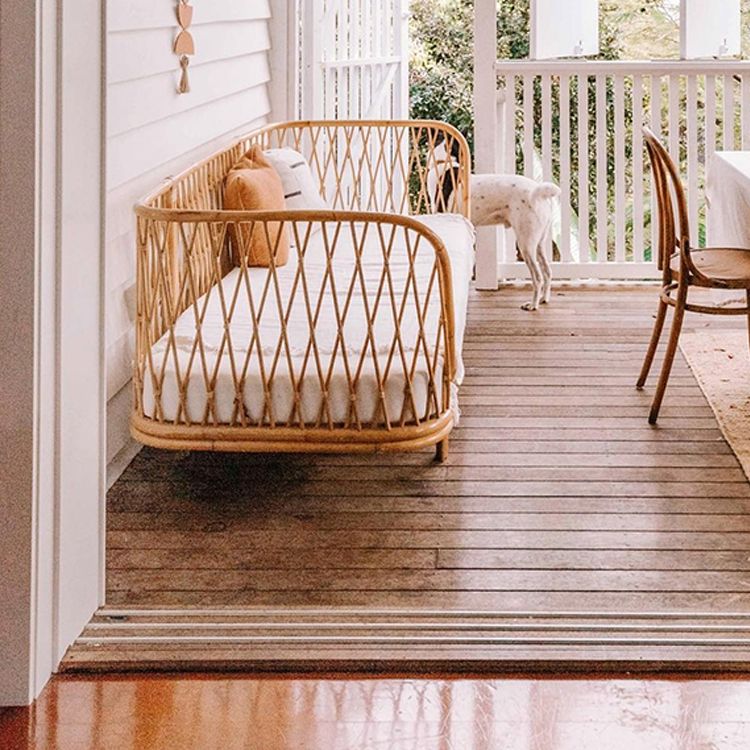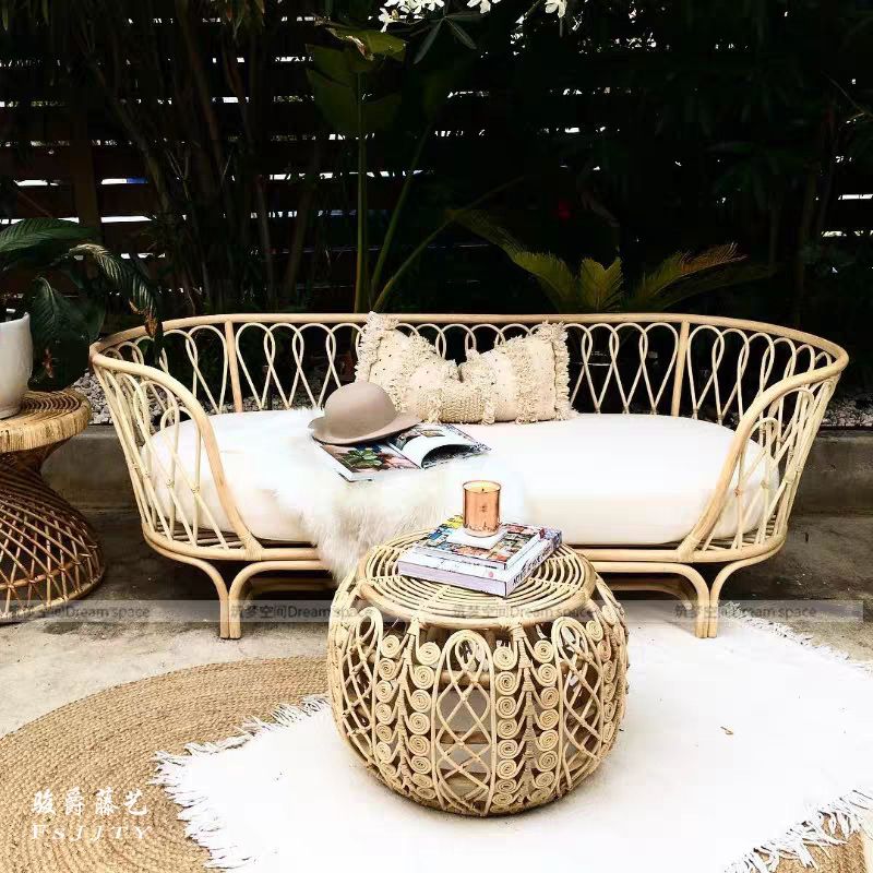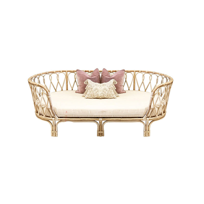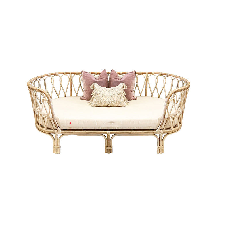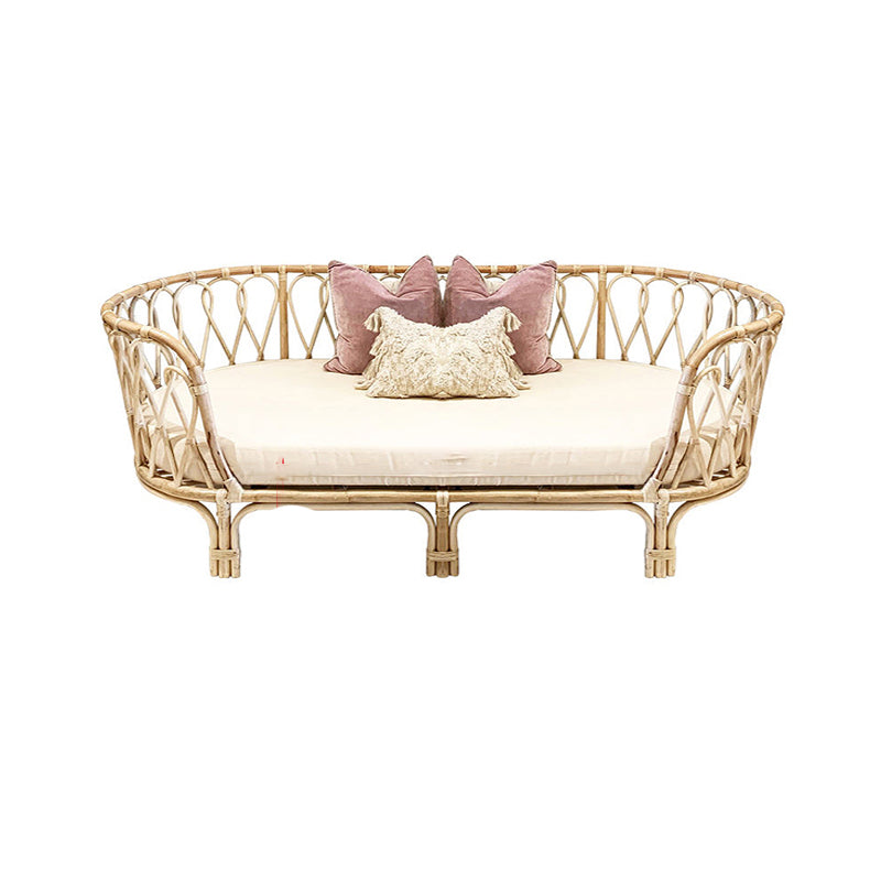 Stoffsofa in leichter Brone -Rahmen tropisches Sofa mit Lolsterkissen