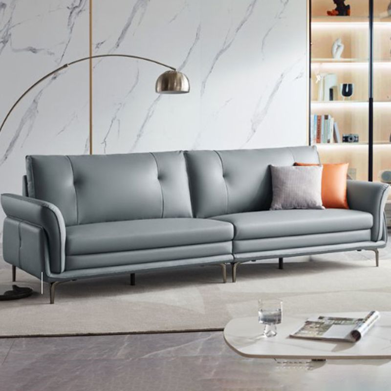 Faux Leder Standard Sofa Flared Arm Loveseat in Grau und Blau