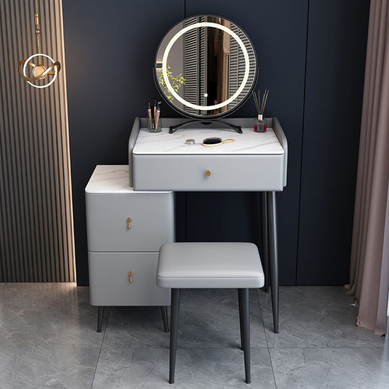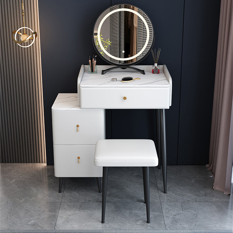 Moderne 3 Schubladen Eitelkeitstisch 23.62 "W Stone Top Dressing Tischhocker Set