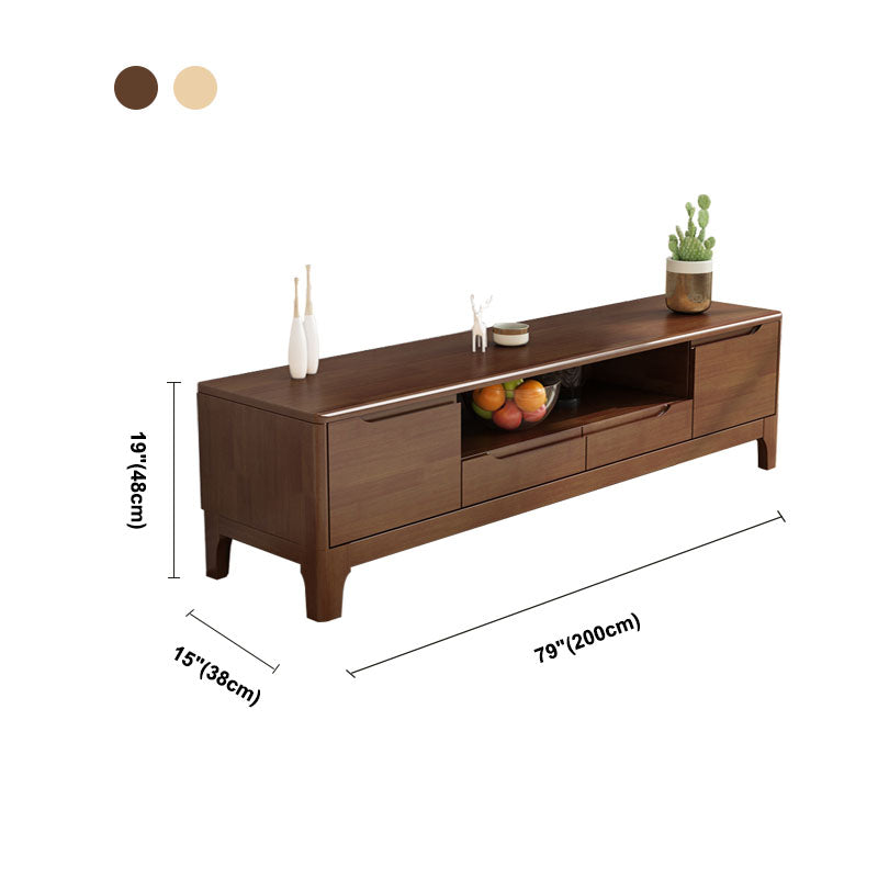 Moderner Gummi -Holz -TV -Standkonsole Open Storage TV Stand mit 2 Türen, 15 "D x 19" h