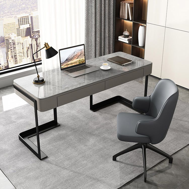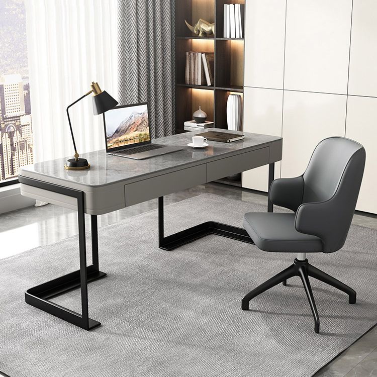 Moderner Steinkrümmungstisch 23.62 "großer grauer Schreibtisch mit 2 Schubladen
