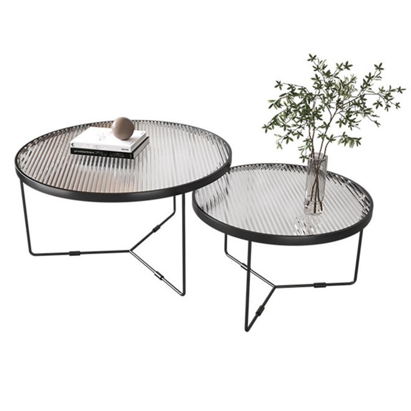 Moderner Stil runder geschärfter Glas Tisch mit Metallkreuzbeinen Couchtisch