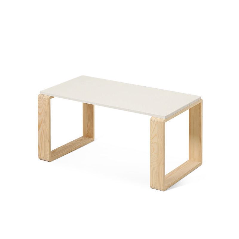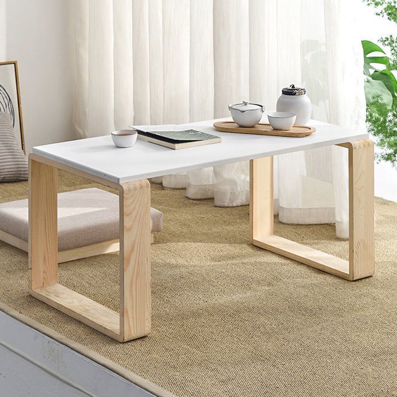 Moderner hölzerner Couchtisch mit hellem Holzschlittenbasis und Rechteckoberteil