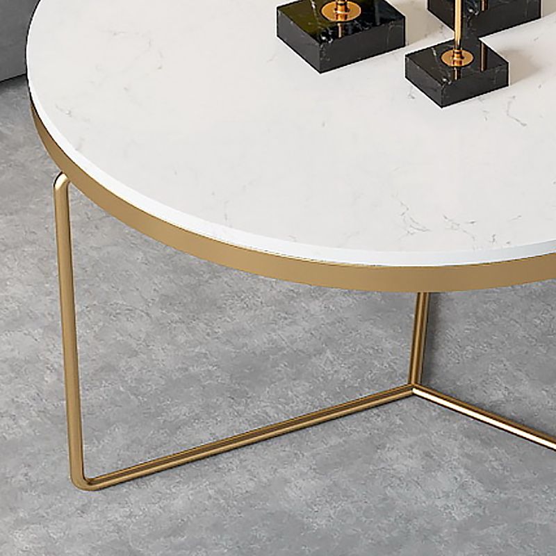 Runder Couchtisch mit goldener Eisen-X-Base und Marmorplatte