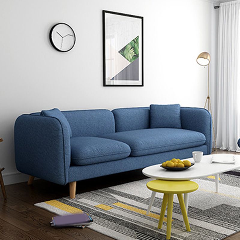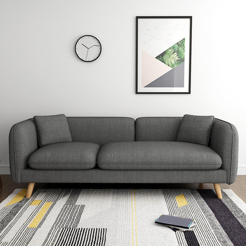 Skandinavisches Leinensofa mit engen Rücken und Smokingarm für die Wohnung