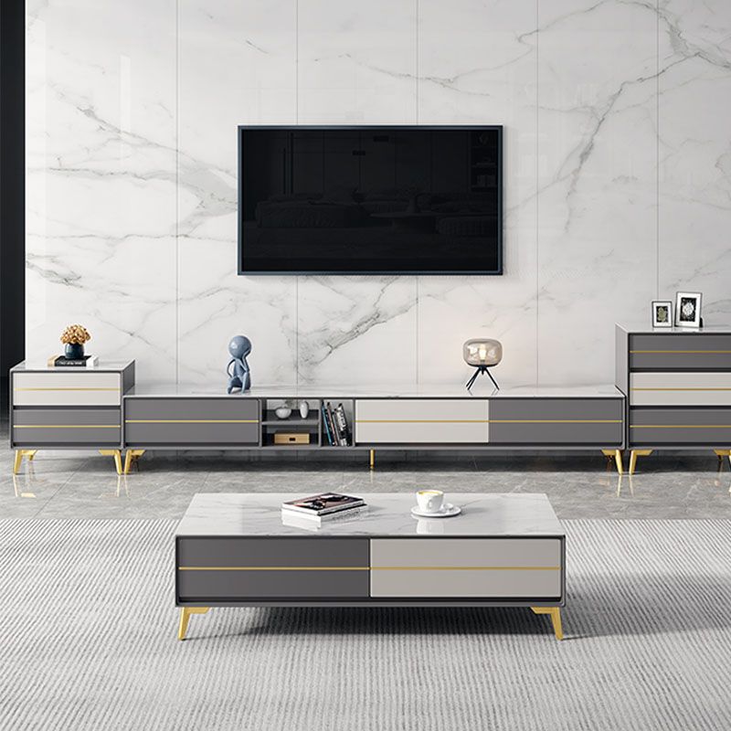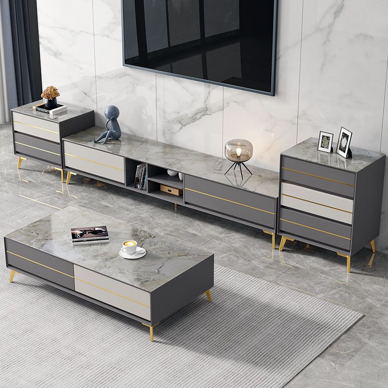 Stein- und Holz -TV -Medien stehen mit Schubladen moderne TV -Standkonsole