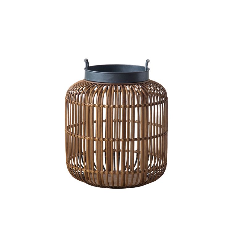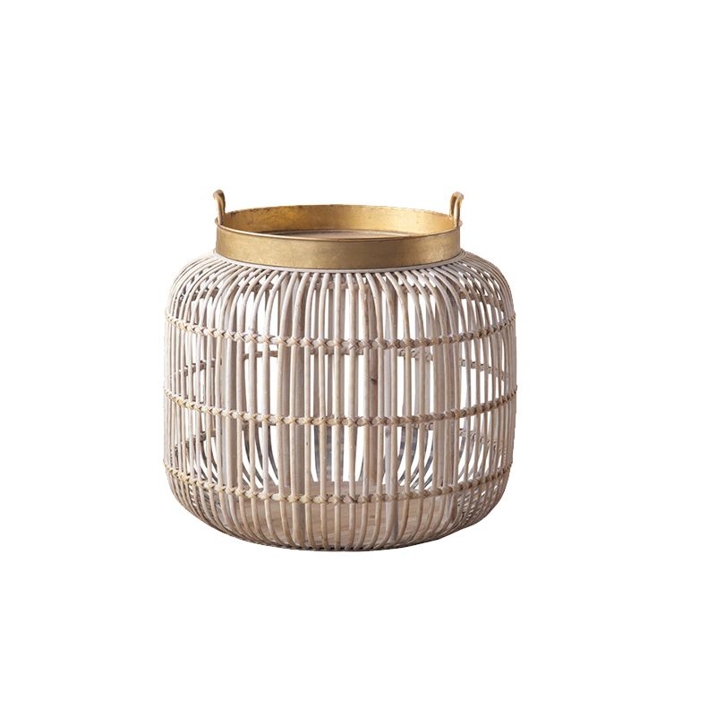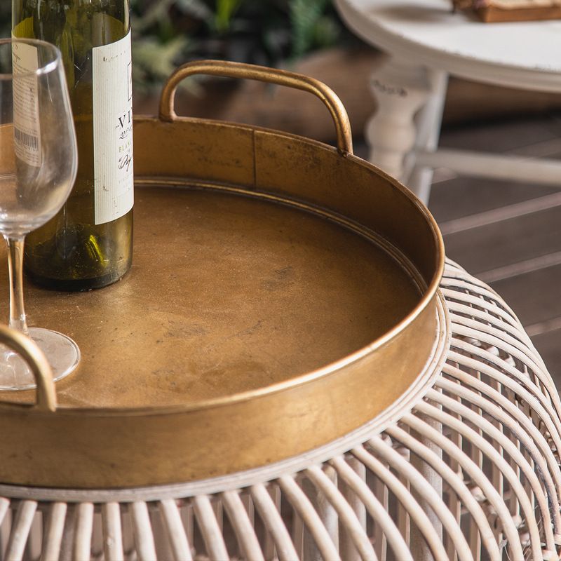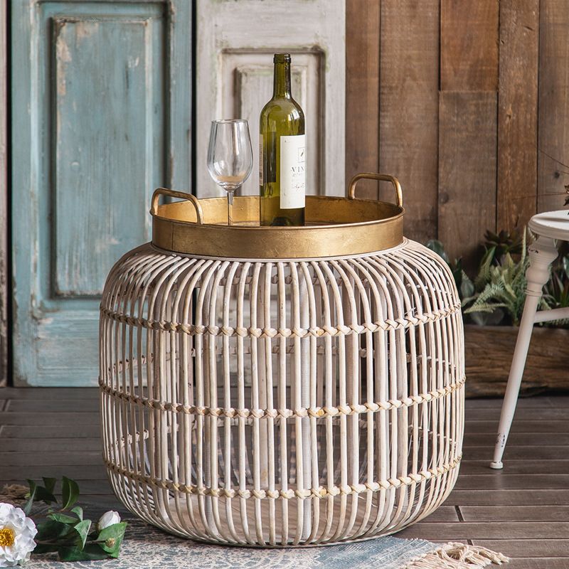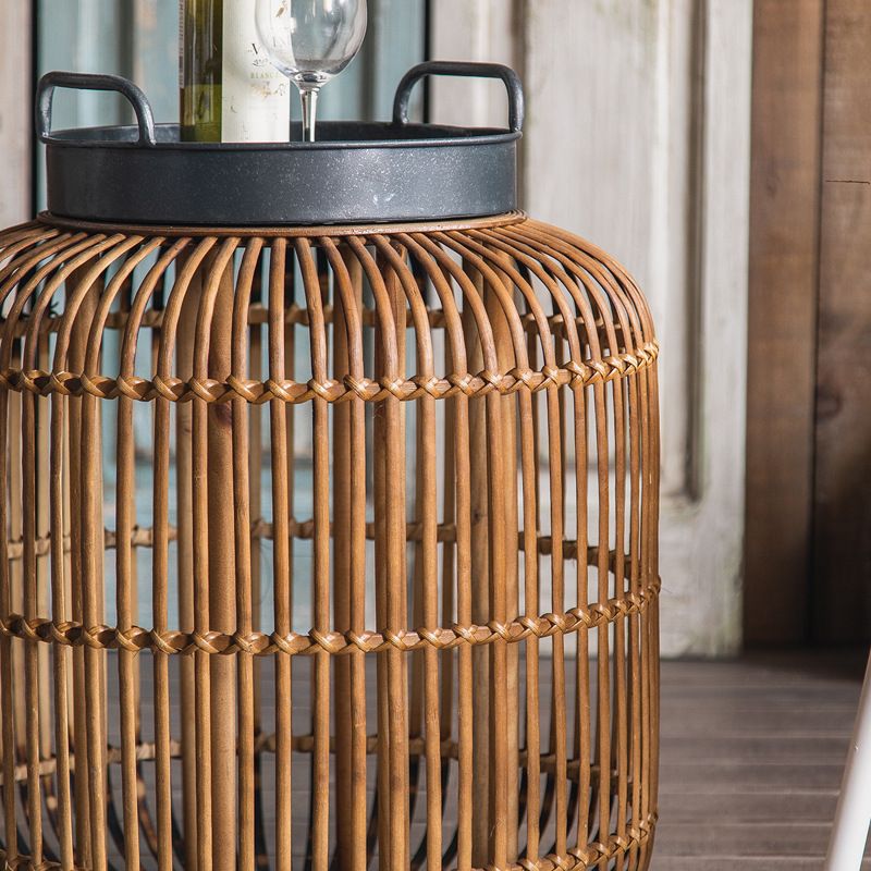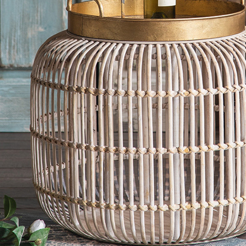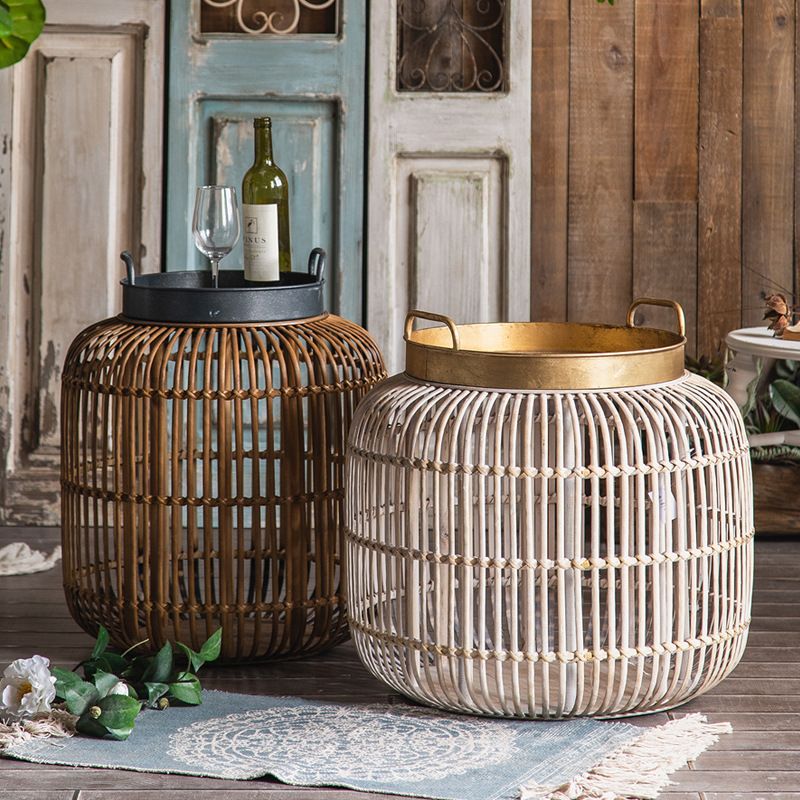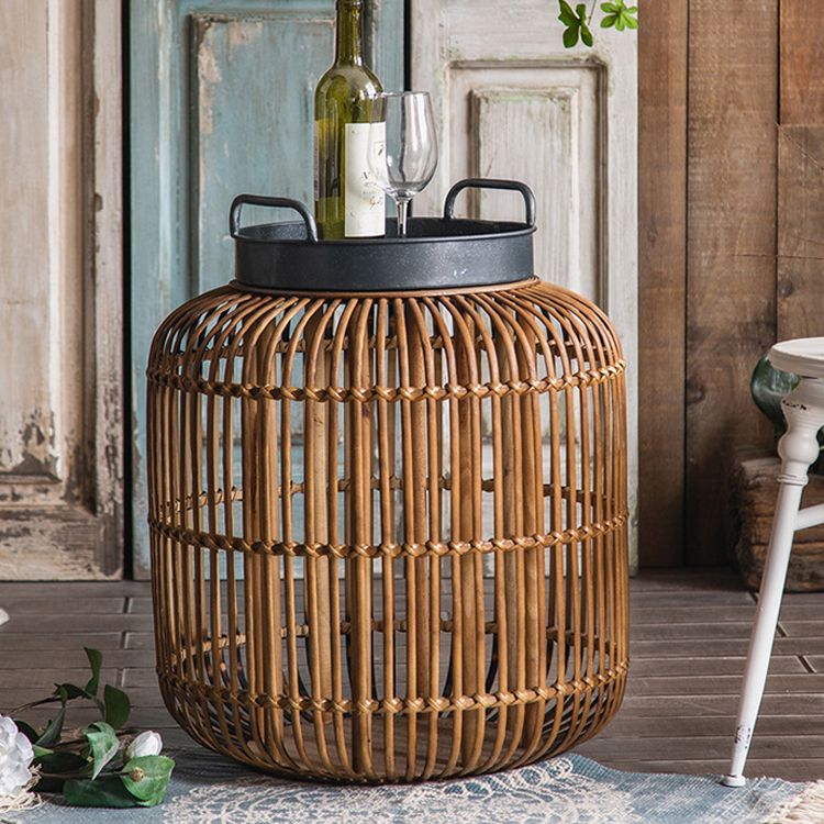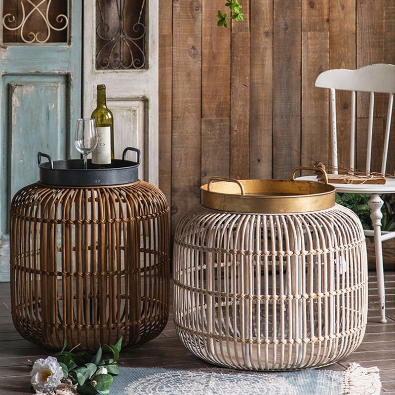 Tablett -Oberseite Akzenttisch Rustikales Metall und Rattan Drum Endtisch
