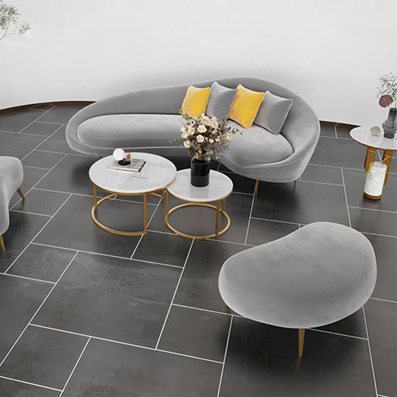 Samt modernes gebogenes Sofa in grauen Sitzgelegenheiten mit abgenähten Arm Arm mit Kissen