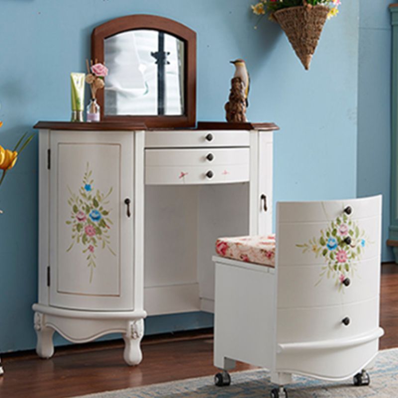 Victorian 1-Schubladen Eitelkeitssatz mit Stuhl und Spiegelverkederstisch
