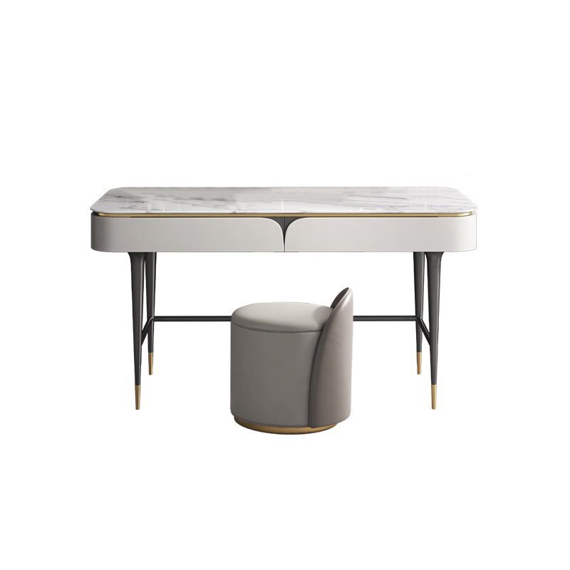 Weißer Waschtisch-Make-up-Eitelkeit Stone Top Spintenstühle Set