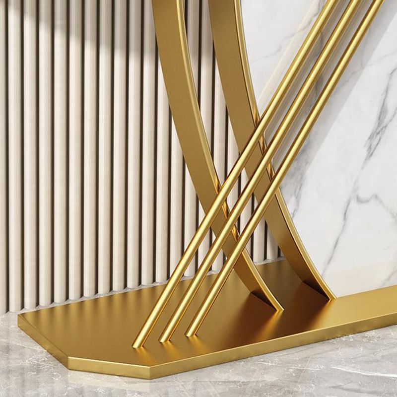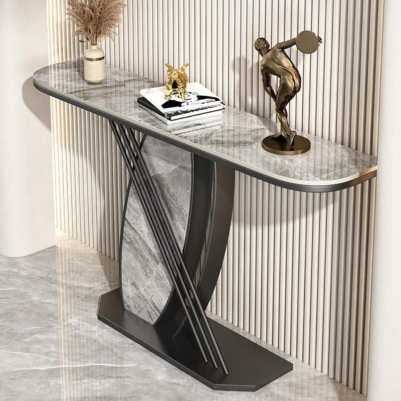 12 Inch Wide Glam Accent Table Half Moon Stone Console Table