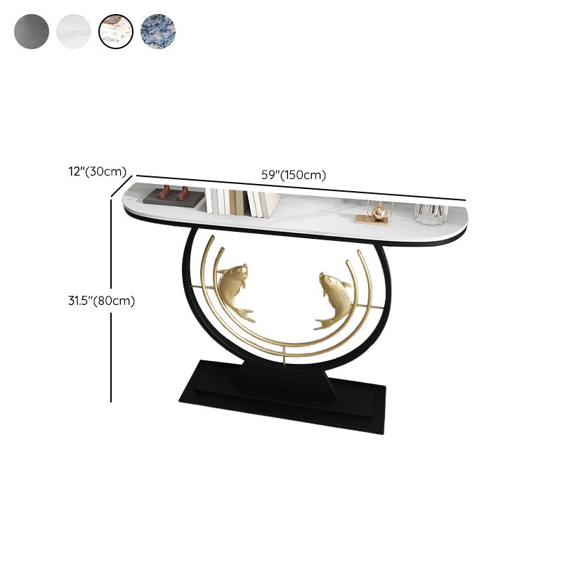 12 inch Wide Modern Accent Table Half Moon Stone Console Table for Hall