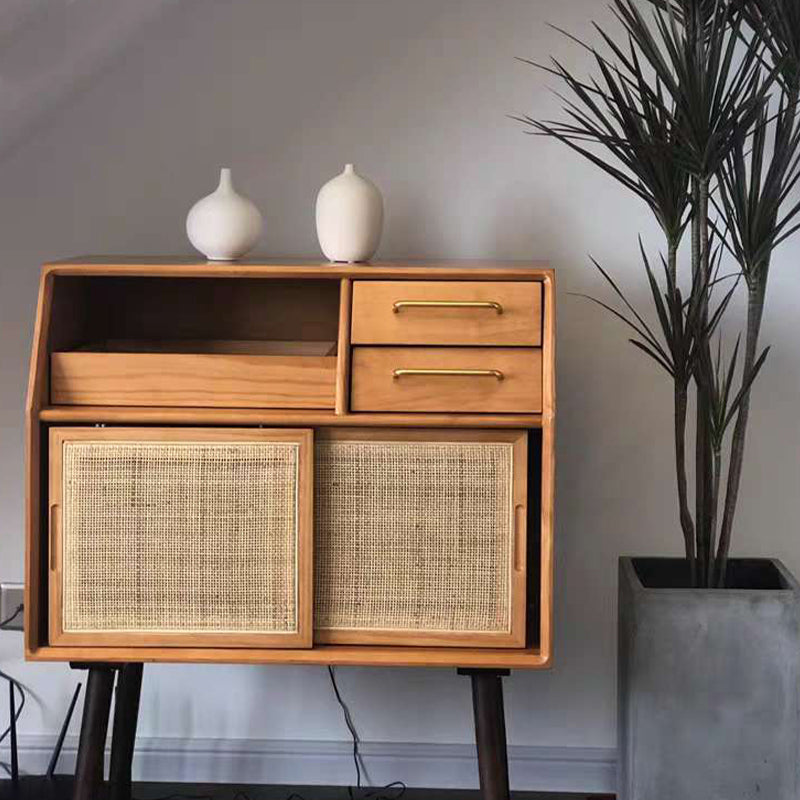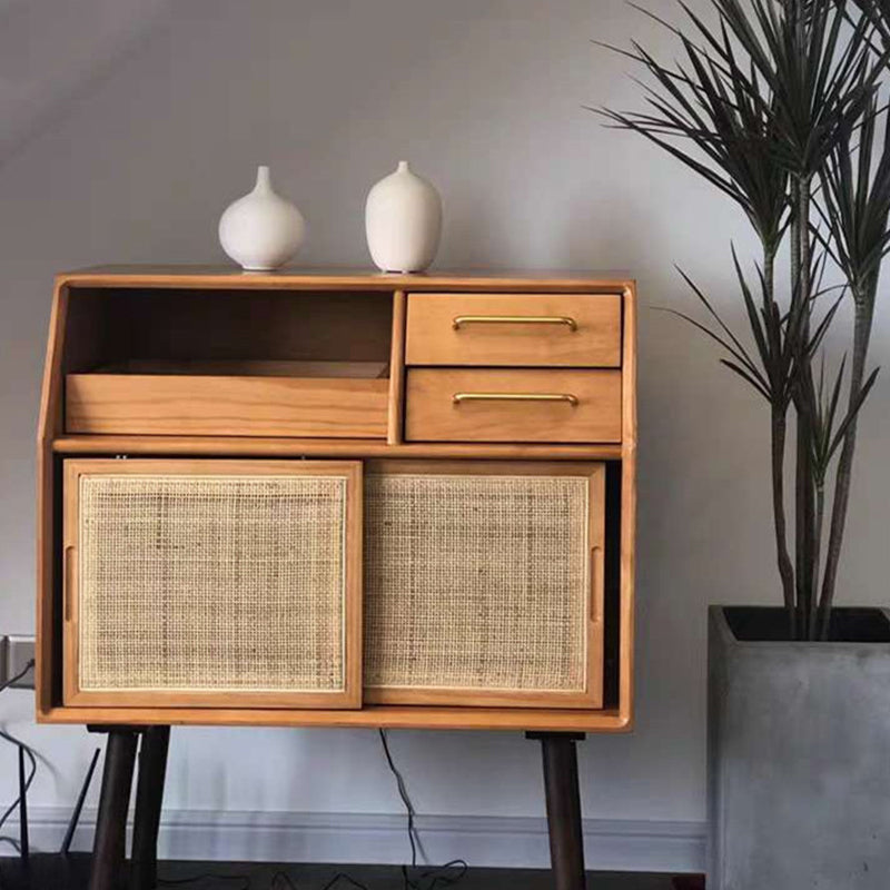 16.5"W√ó38.6"H Sliding Door Sideboard 2-drawer Pine Solid Wood Dining Server