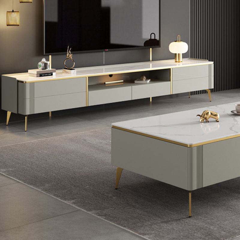 16" W Modern TV Media Stand Stone Open Shelving TV Media Console with Drawers