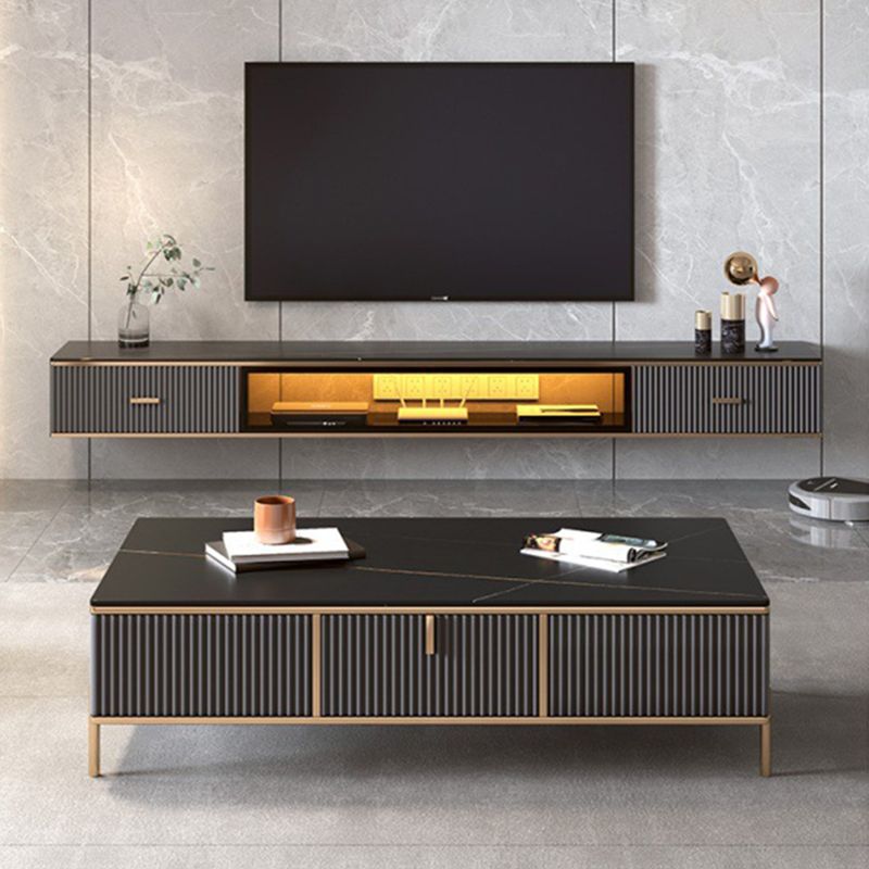 2 Drawers Contemporary TV Stand Stone Wall-mounted TV Cabinet