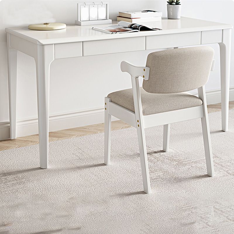 2 Drawers Office Desk Solid Wood Curved Writing Desk with Wooden Legs
