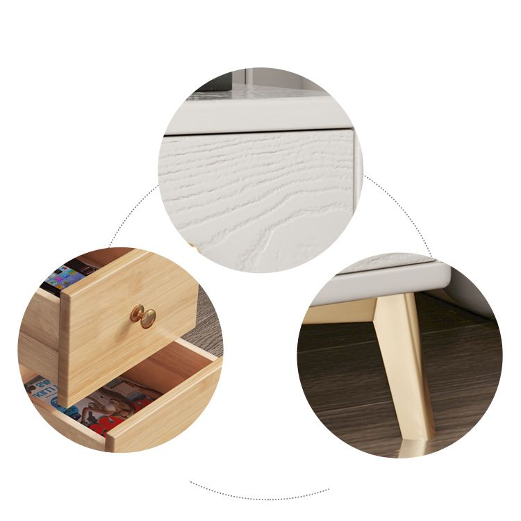 2 Drawers Solid Wood Nightstand Contemporary Night Table With Legs ,19.7" Tall