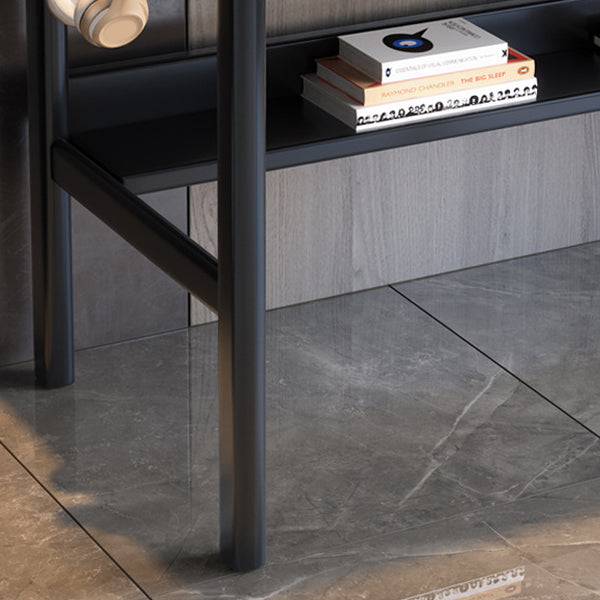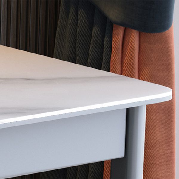 2 Drawers Stone Writing Desk 1-Shelf 29.53" Tall Office Desk with H-Shape Base