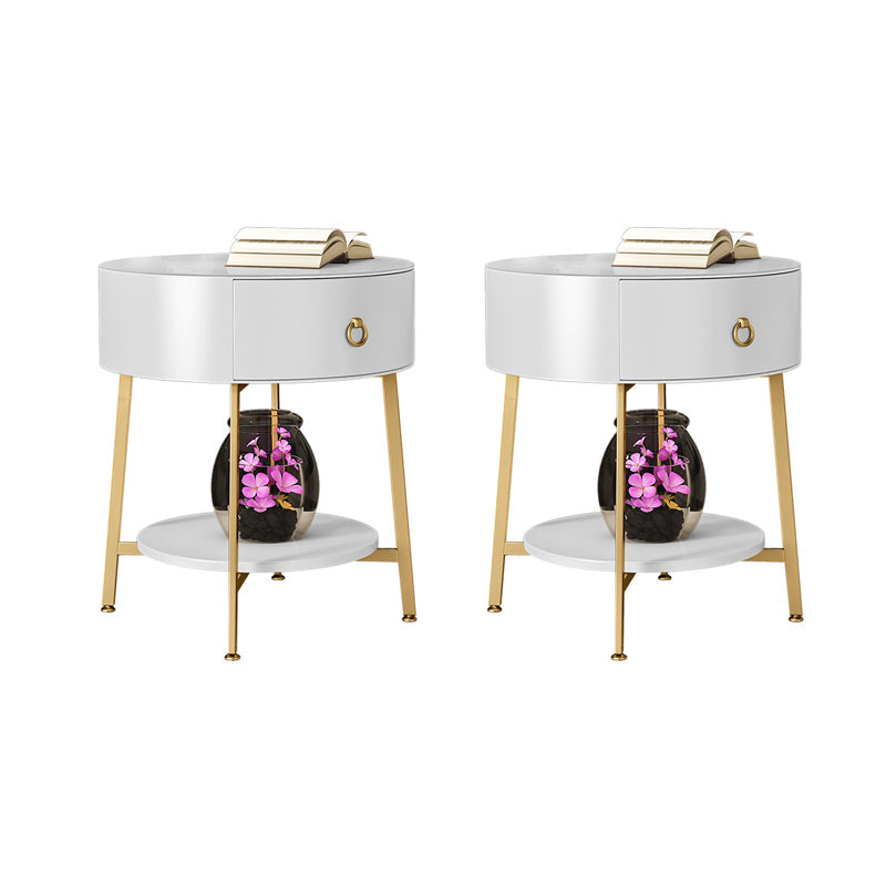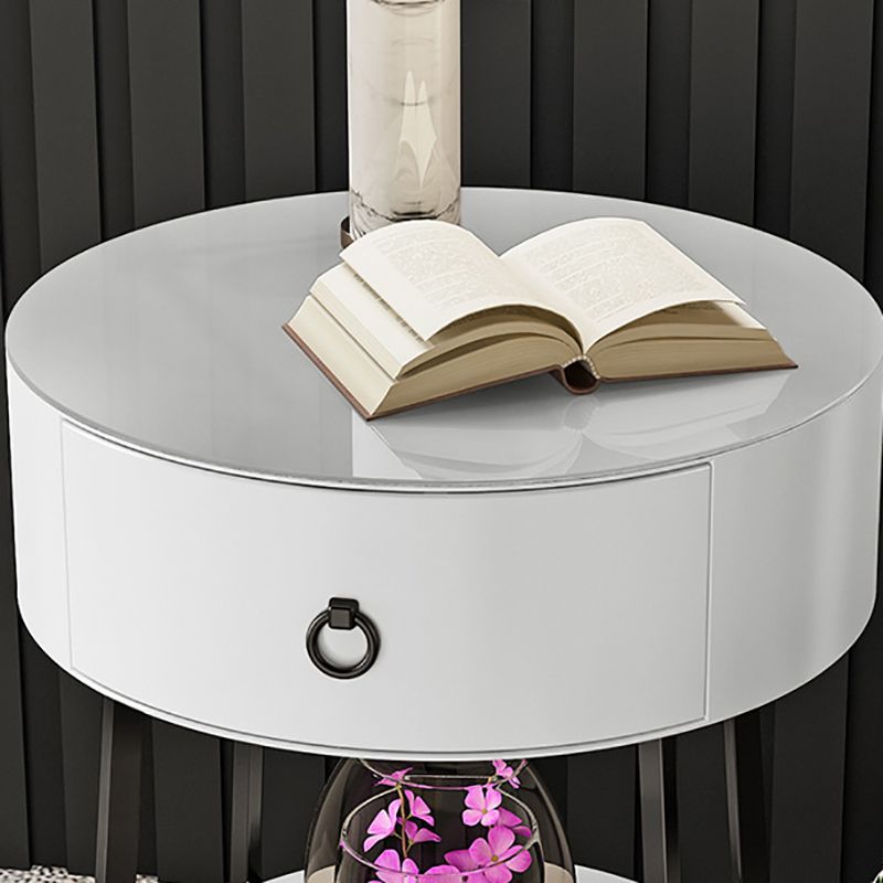 20.47" Tall Glass Top Nightstand 1-drawer Wood Bedside Cabinet with 1 Shelf