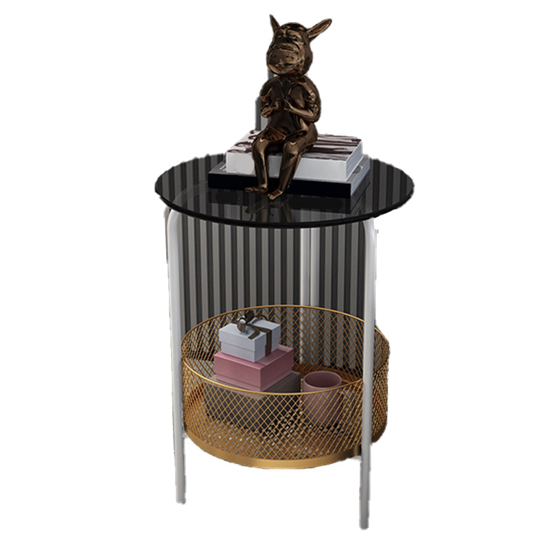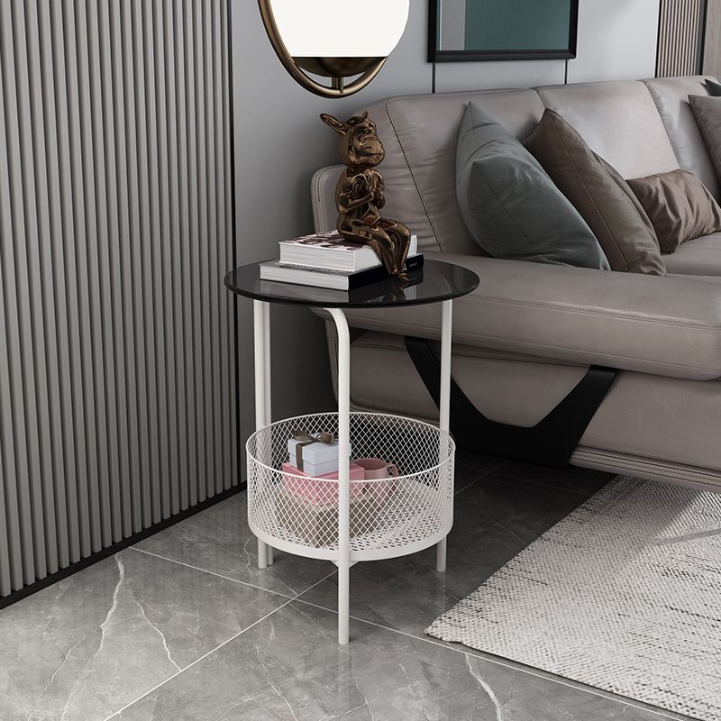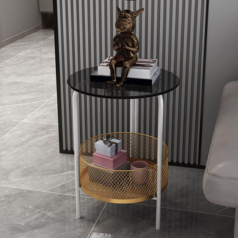 23.6" Tall Modern Round Glass Top Side Table Iron 3 Legs End Table with Storage